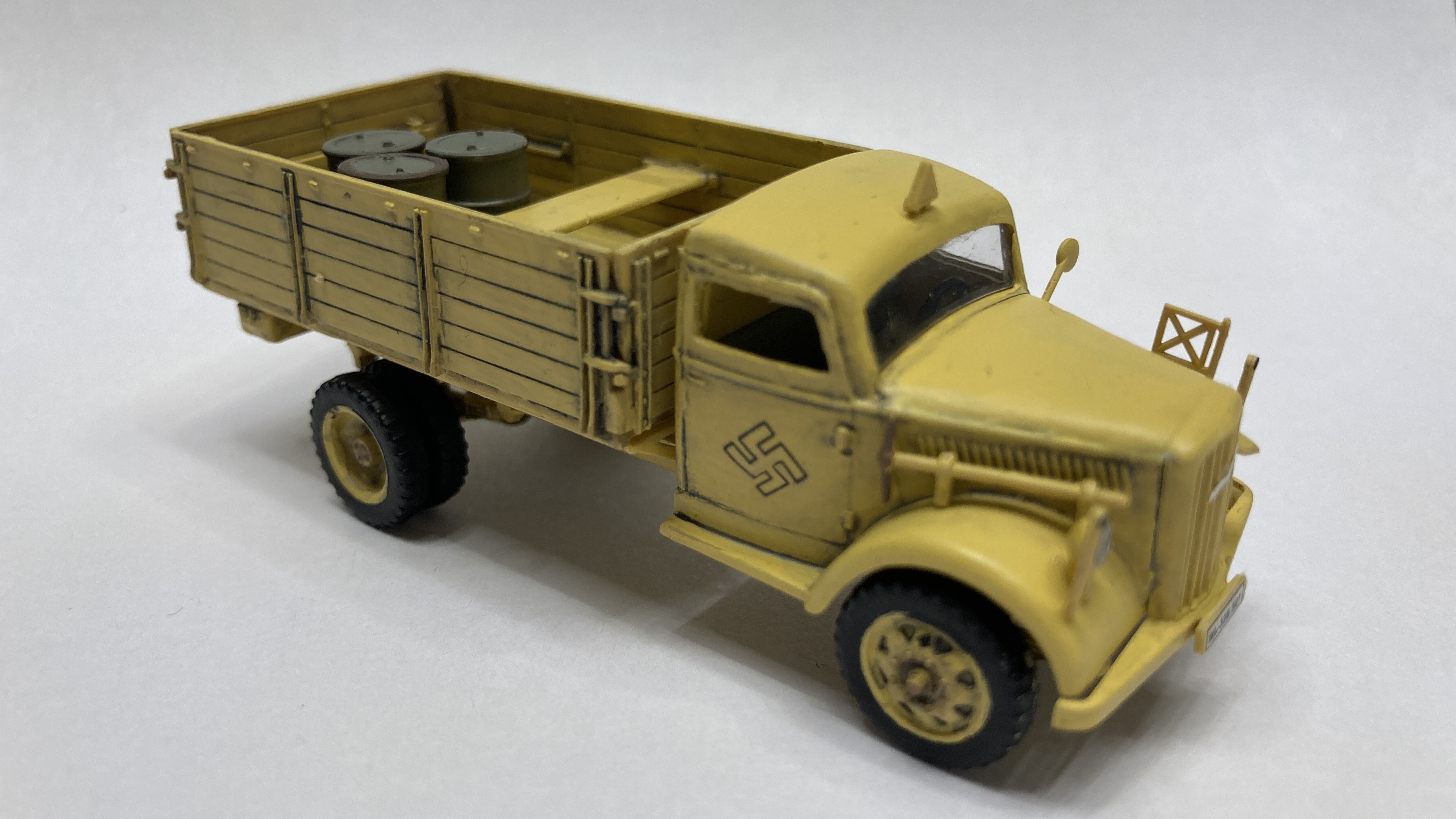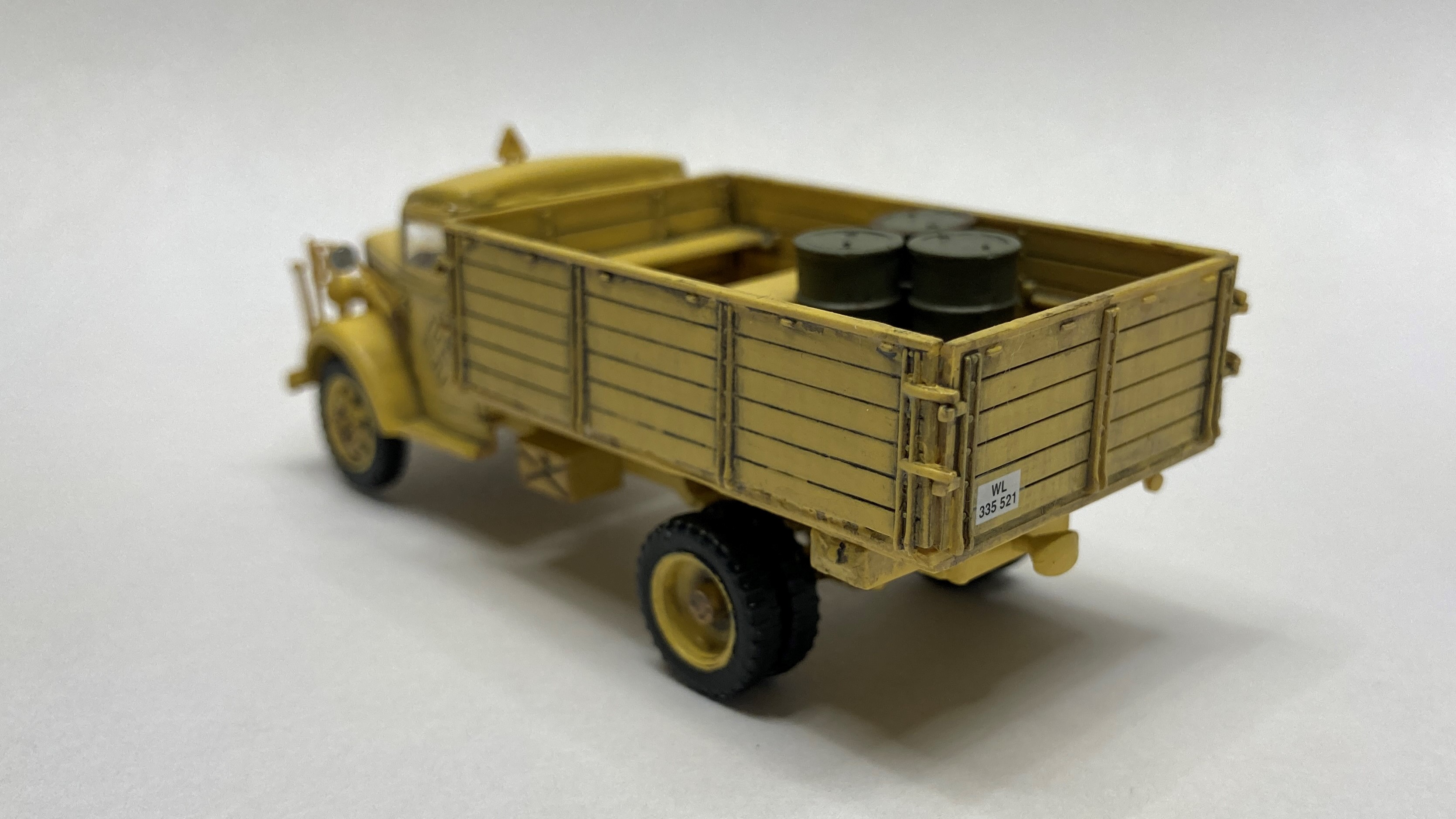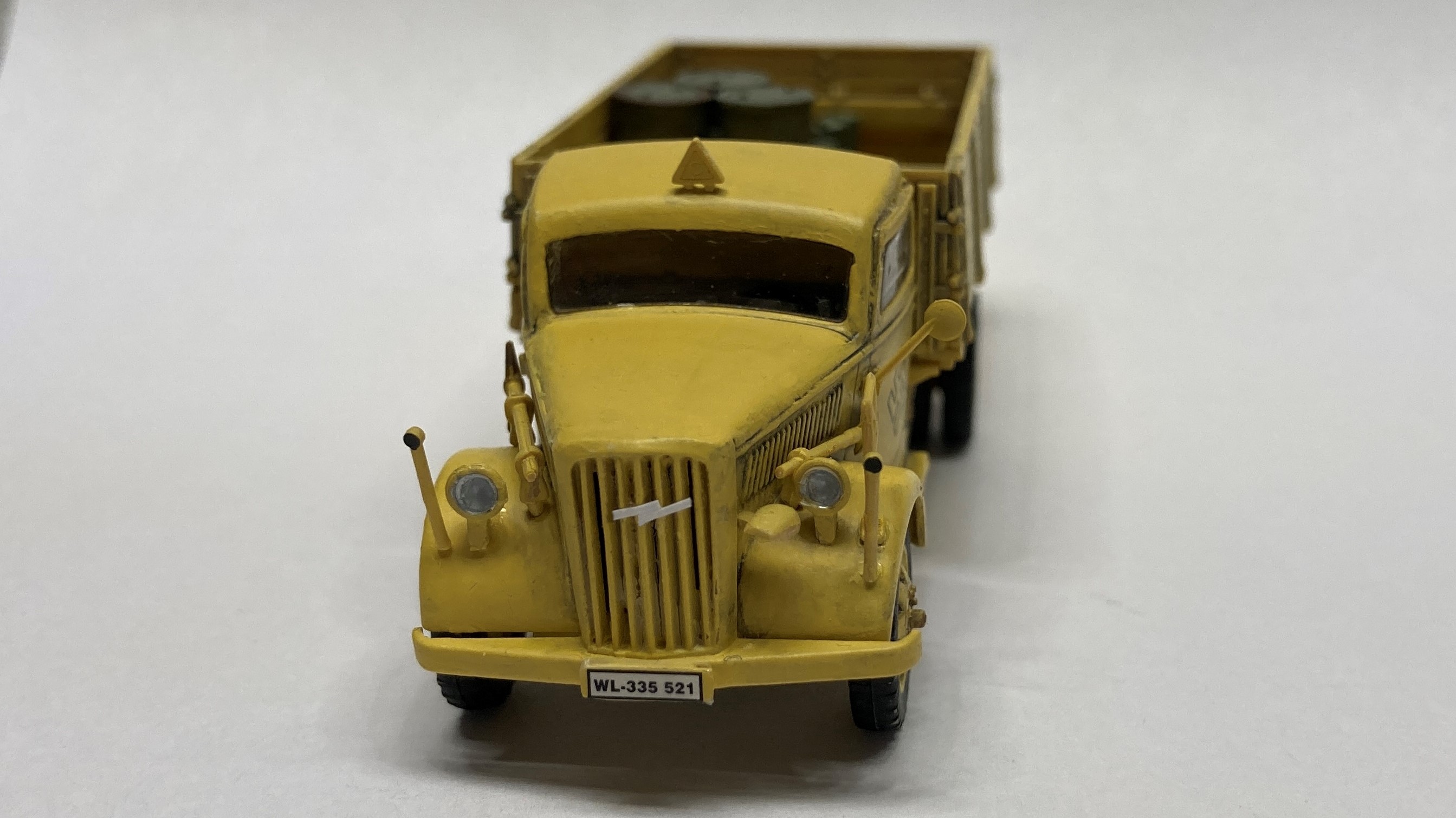 Opel Blitz, 1930’lardan 1975’e kadar üretilen bir seri hafif ve orta ağırlıktaki Alman kamyonlarıdır. Almanların savaş öncesi silahlanma çabaları sonucu 1935’te açılan yeni Opelwerk Brandenburg tesislerinde 1944’e kadar 130.000 Blitz kamyonu ve şasesi üretilmiştir. Savaştan sonra 1952’de yeniden tasarlanan Blitz, 1975’e kadar farklı tiplerde üretilmeye devam etmiştir. Blitz, personel ve kargo taşıma, yakıt tankeri, uçak savar bataryası, komuta merkezi, ambulans, telsiz istasyonu gibi çok farklı amaçlarla kullanılmıştır. Benim de modelini yaptığım 3 tonluk Kfz. 305 varyantı, 73.5 hp güç üreten 6 silindirli 3.600 cc’lik benzinli Opel motoruyla 80 km/s hıza ulaşabilmektedir ve 410 km’lik bir menzile sahiptir.