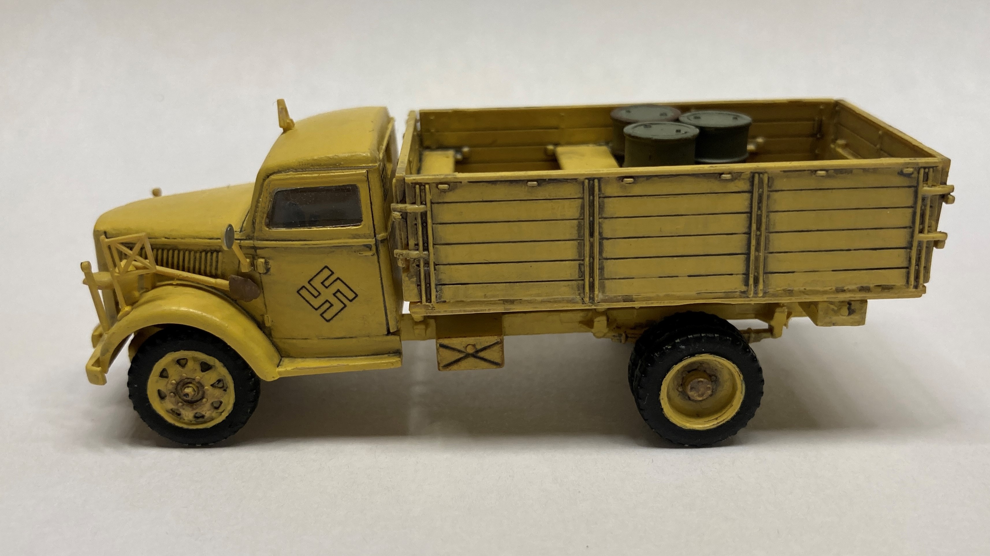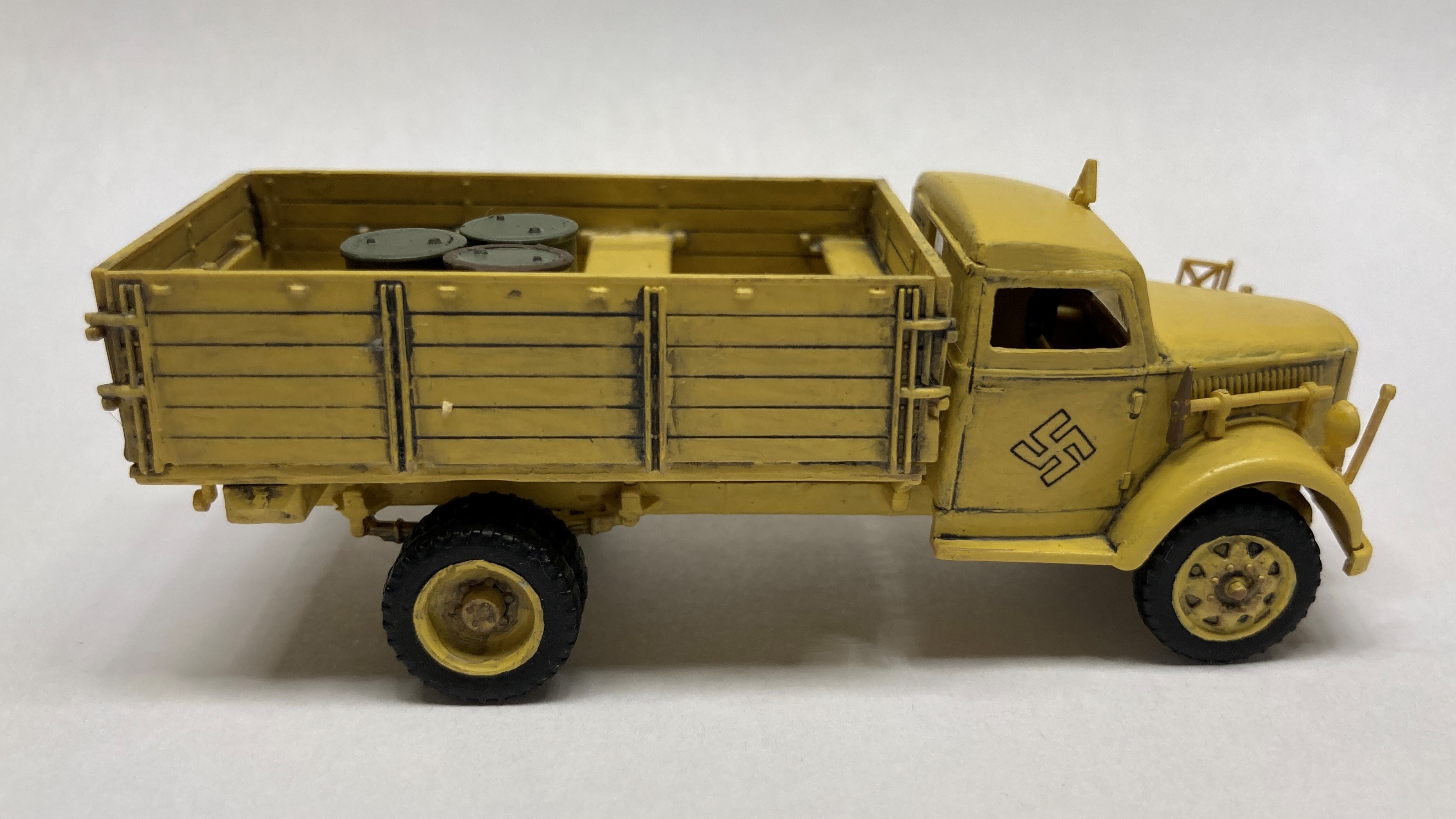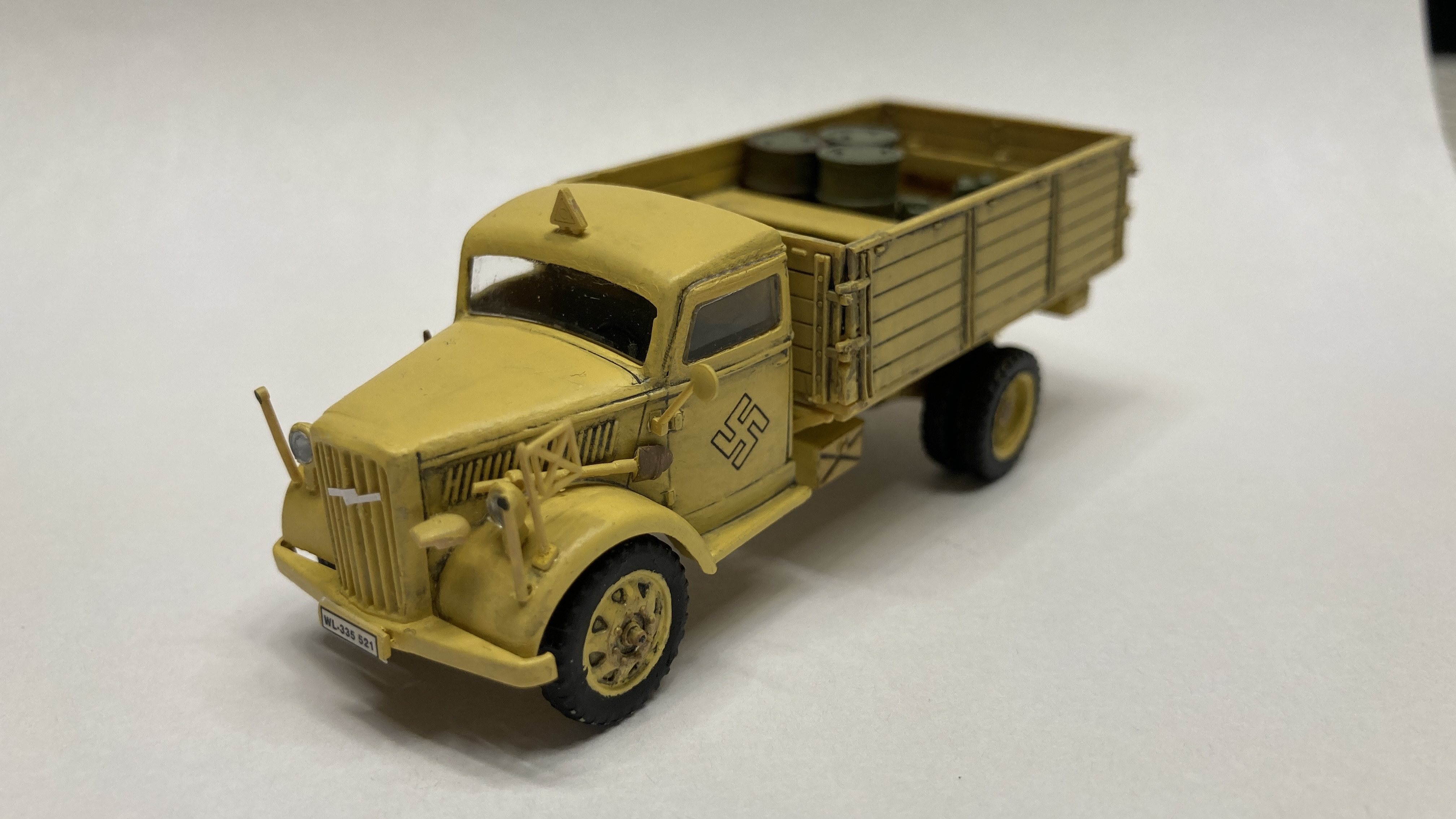 Opel Blitz, 1930’lardan 1975’e kadar üretilen bir seri hafif ve orta ağırlıktaki Alman kamyonlarıdır. Almanların savaş öncesi silahlanma çabaları sonucu 1935’te açılan yeni Opelwerk Brandenburg tesislerinde 1944’e kadar 130.000 Blitz kamyonu ve şasesi üretilmiştir. Savaştan sonra 1952’de yeniden tasarlanan Blitz, 1975’e kadar farklı tiplerde üretilmeye devam etmiştir. Blitz, personel ve kargo taşıma, yakıt tankeri, uçak savar bataryası, komuta merkezi, ambulans, telsiz istasyonu gibi çok farklı amaçlarla kullanılmıştır. Benim de modelini yaptığım 3 tonluk Kfz. 305 varyantı, 73.5 hp güç üreten 6 silindirli 3.600 cc’lik benzinli Opel motoruyla 80 km/s hıza ulaşabilmektedir ve 410 km’lik bir menzile sahiptir.