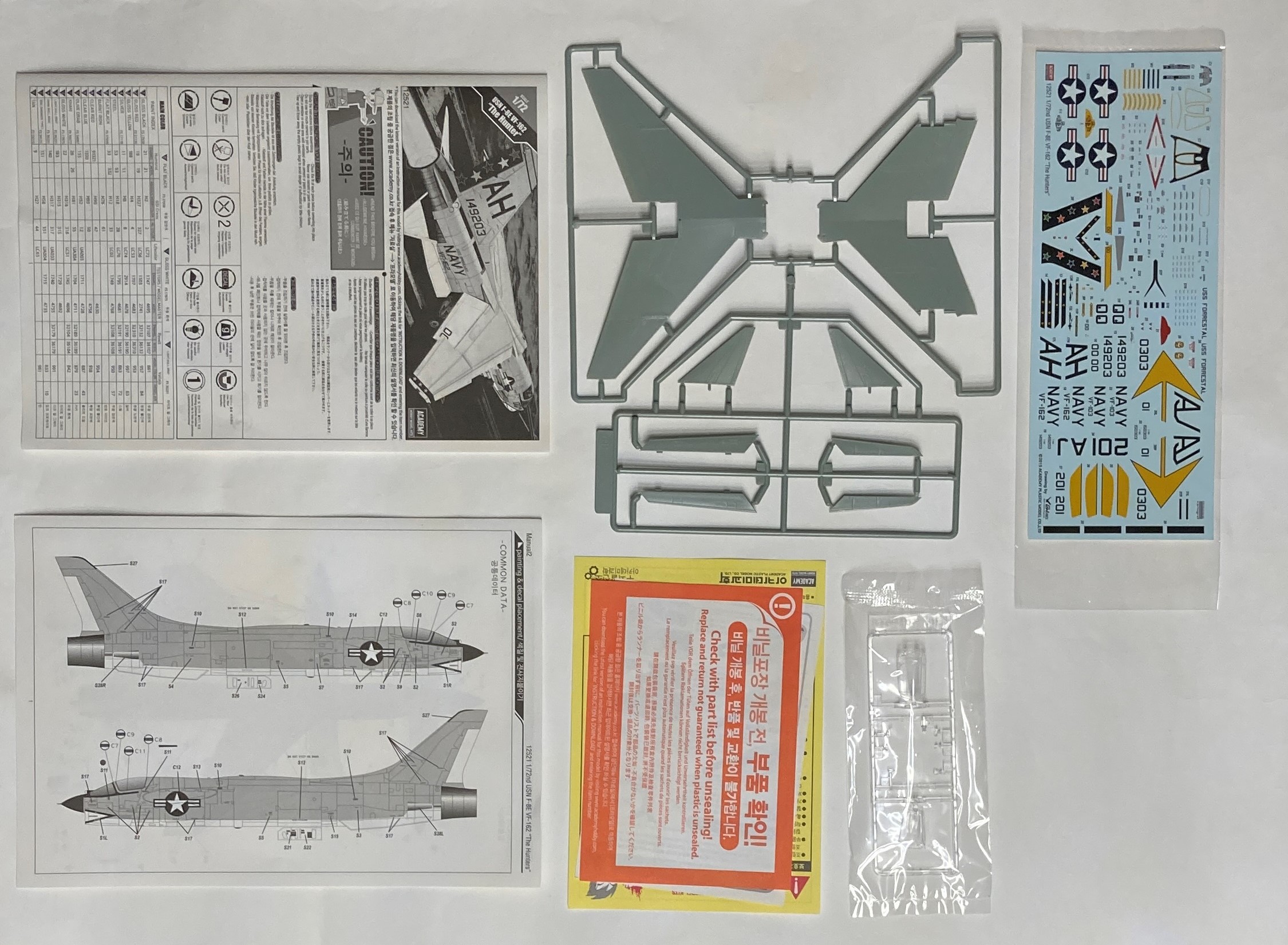 Yaptığım kit Academy firmasının 2004 yılında çıkardığı modern bir kalıptan üretilmiş ve daha sonra 2018 yılına kadar farklı kutularla piyasaya sürülmüş bir serinin 2015 yılına ait bir örneği. İçe detay, gayet iyi ve temiz kalıplanmış, çapaksız ve enjektör izi bulunmayan mükemmel bir kit. Gerçekçilik ve uyum üst düzeyde. Şeffaf parçalar çok temiz ve kanopi oturumu mükemmel. İtalyan firması Cartograph tarafından basılan decaller netlik ve uygulama bakımından üst düzeyde. Çok sayıda ve detaylı stencil yanında seçenek olarak VF-103 Sluggers ve VF-162 Hunters seçenekleri verilmiş. Bazı bölümlerde dikkat ve ciddi el becerisi gerektiren montaj noktaları mevcut.