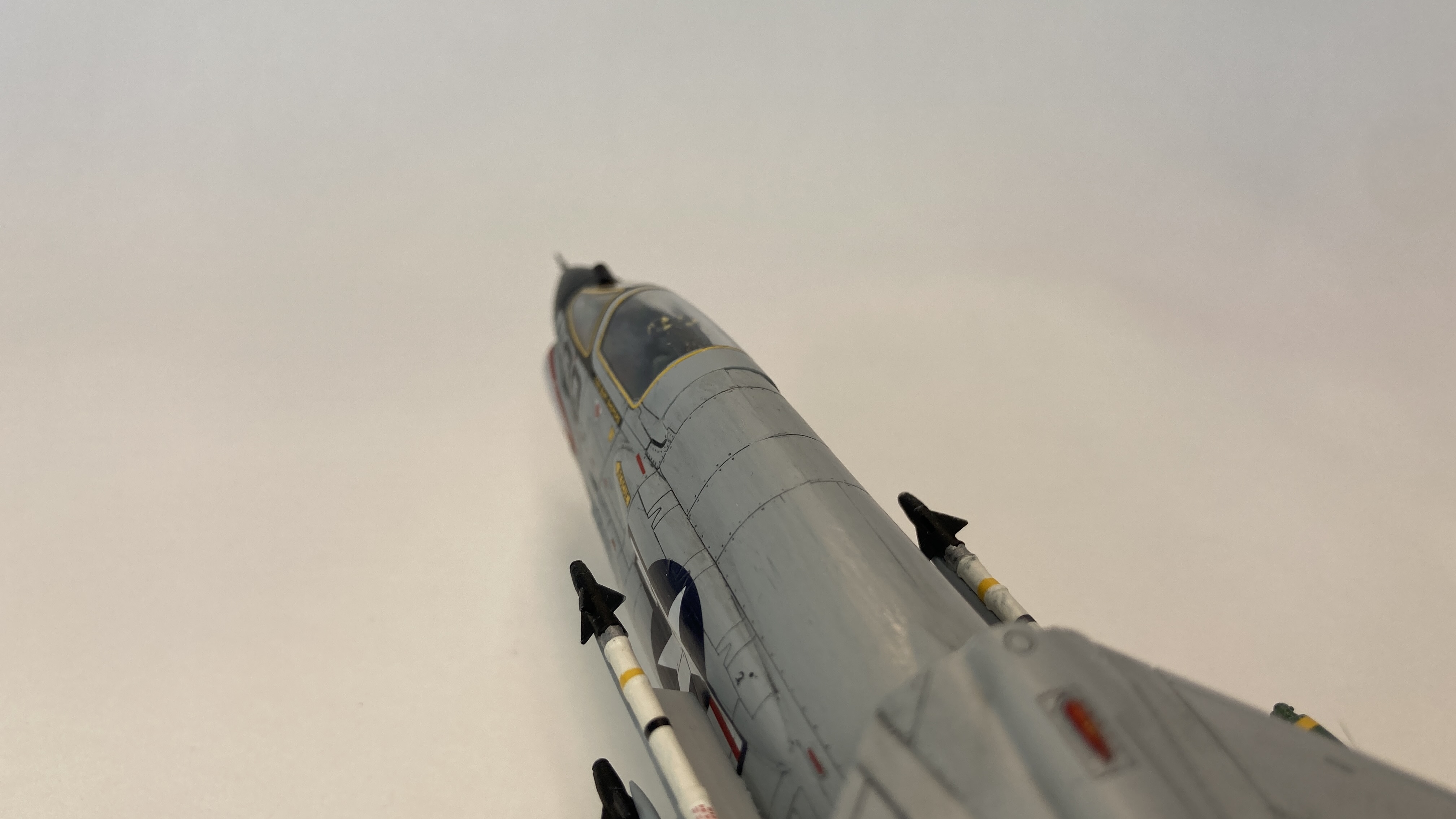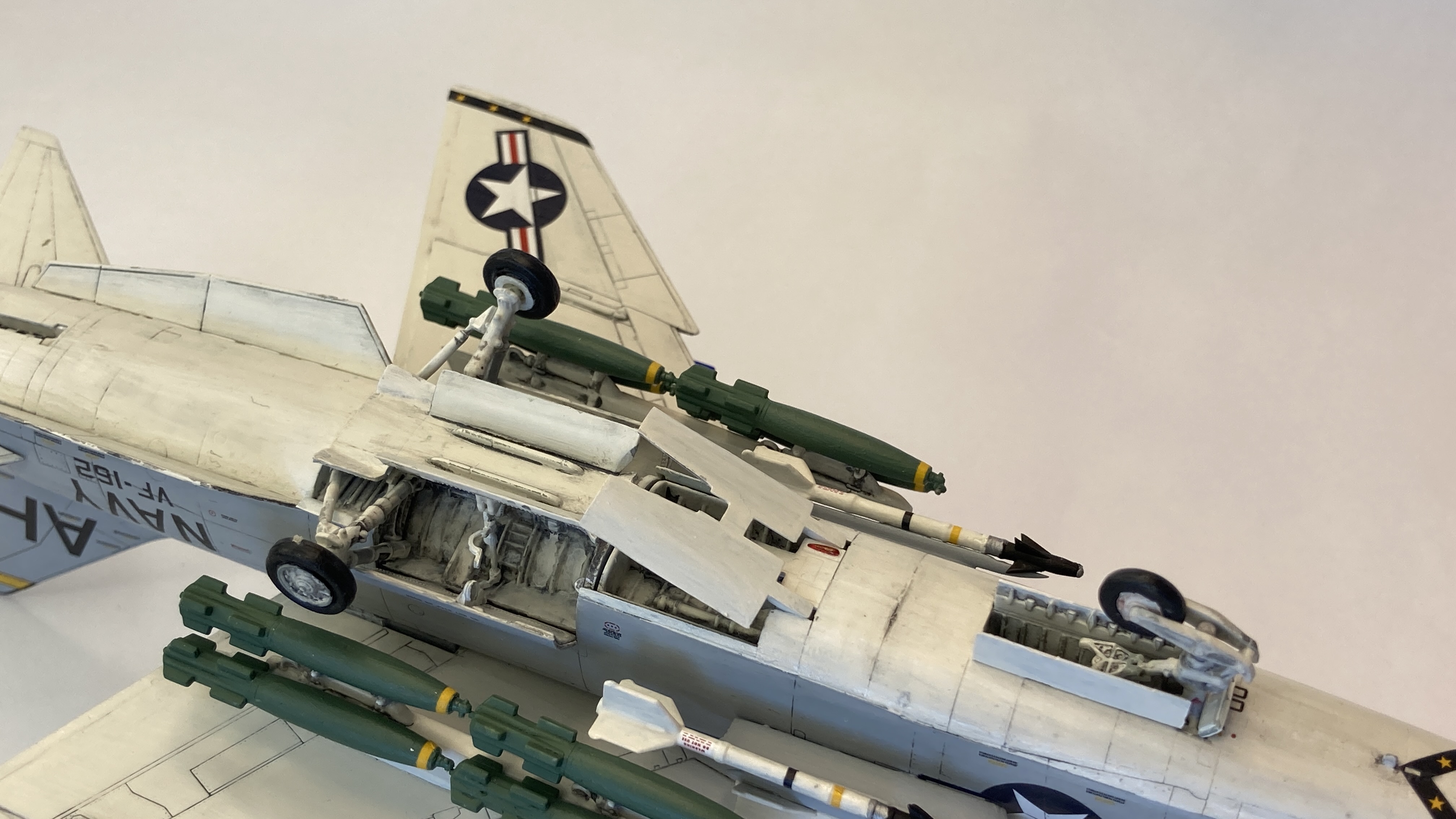 Genel olarak yapımı sorunsuz ve keyifli bir kit; hiç putty kullanmadan bitirdiğim ender modellerden biri oldu. Yapımı 20 gün süren modeli VF-162 Hunters olarak, değişken hücum açılı kanatları yukarıda ve kanopisi kapalı şekilde bitirdim. Tüm boyama ve vernik işlemlerini fırça ile yaptım.