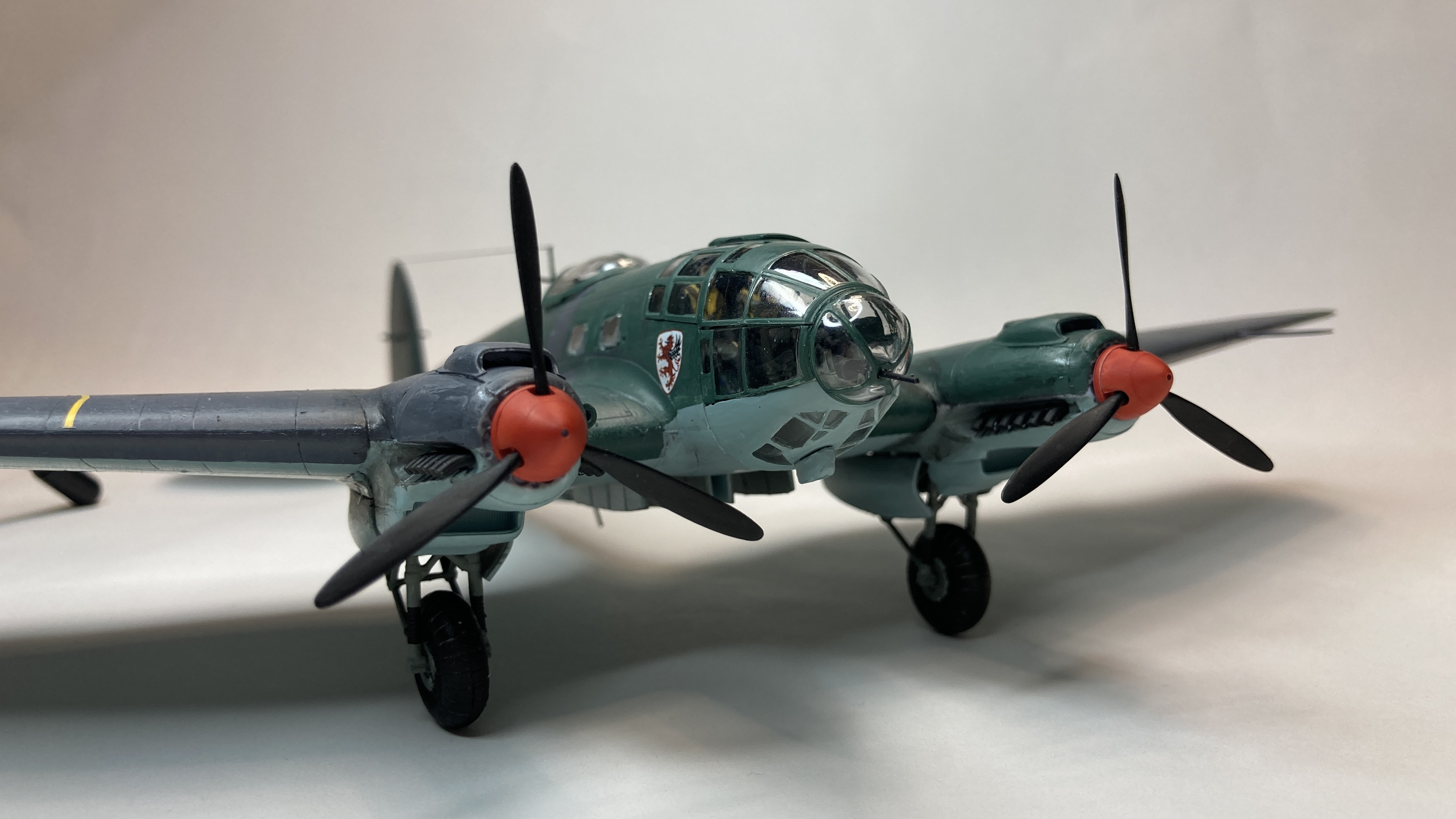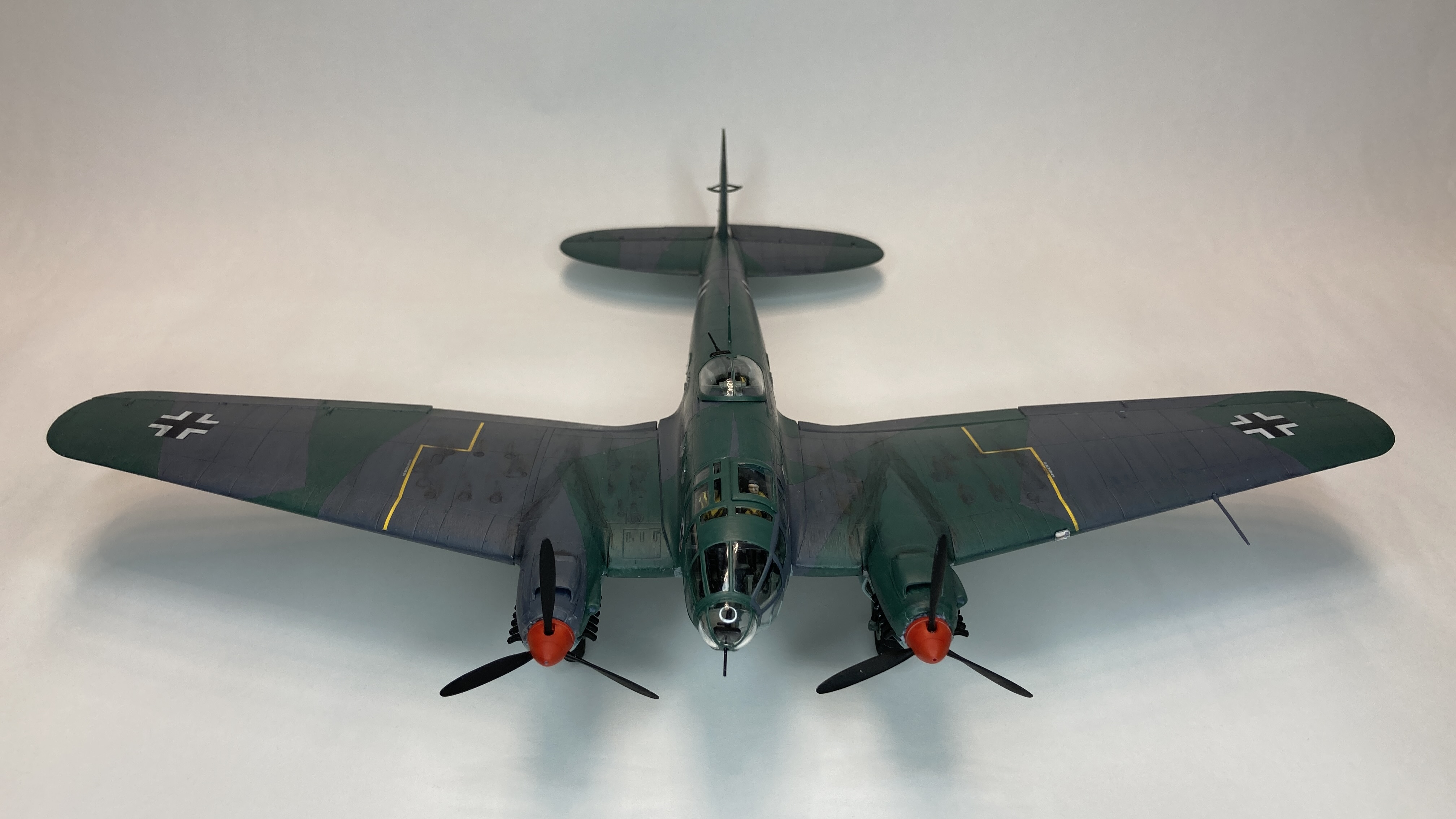 Benim de modelini yaptığım P-2 varyantı 2 adet 12 silindirli ve her biri 1085 HP güç üreten Daimler-Benz DB 601 A-1 motoruyla 410 km/s hıza ve 8.000 metre irtifaya ulaşabilmekteydi. Gövde üstünde, altında ve burunda toplam 3 adet 7.92 mm’lik MG-15 makineli tüfek ile savunmasını sağlamaktaydı. İleriki varyantlarda bu sayı 7 adete kadar çıkacaktır. Dahili olarak toplam 2.000 kg bomba taşıyabilen uçakta pilot, navigatör (bombacı/burun nişancısı) ve telsizci (sırt nişancısı) olmak üzere 3 personel bulunmaktadır.