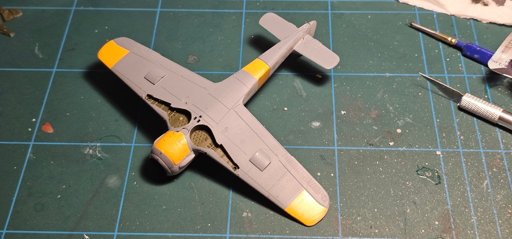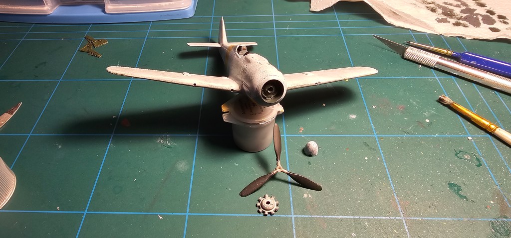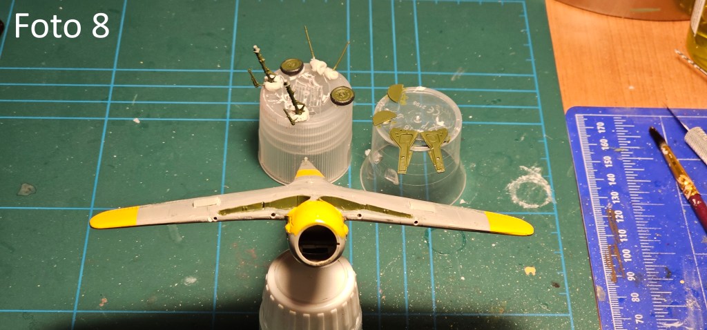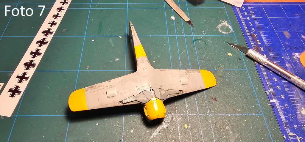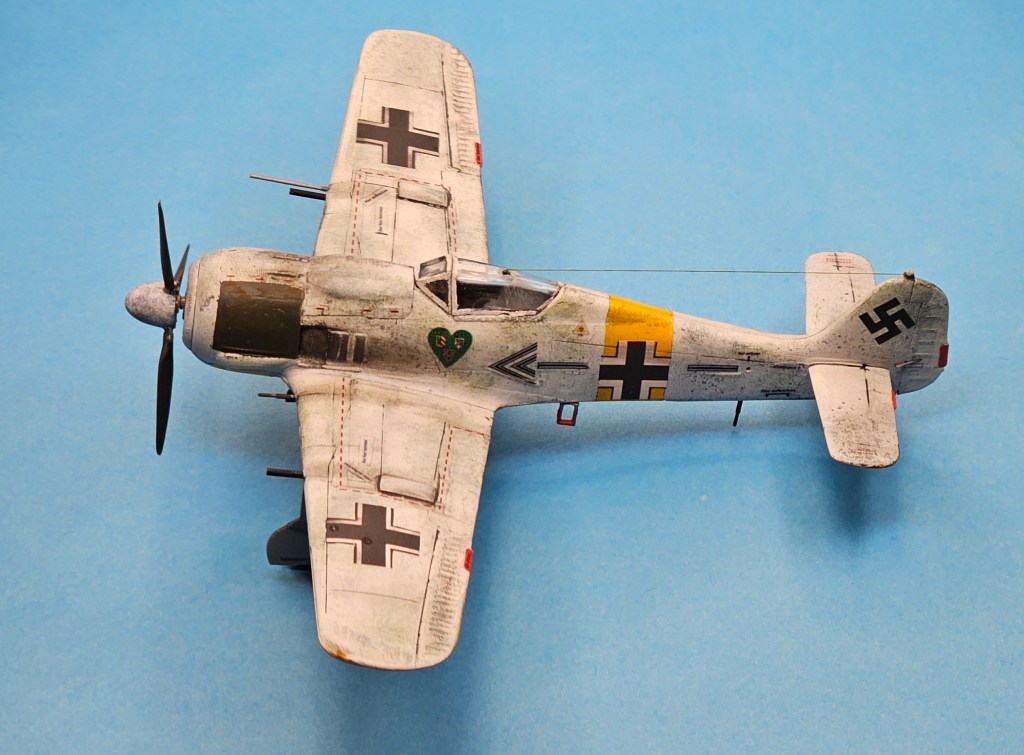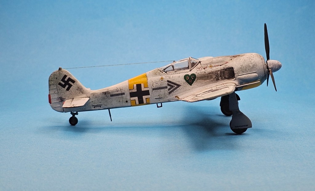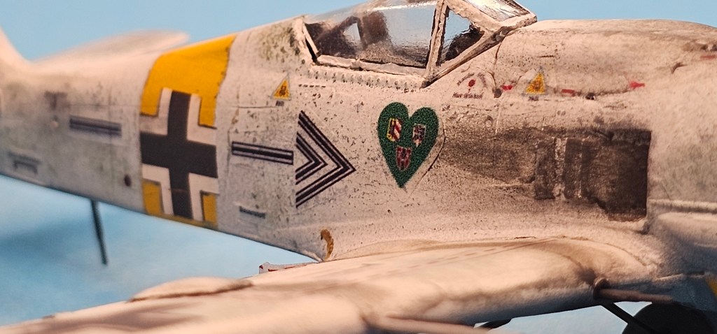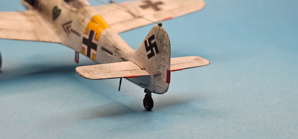 Renovasyon sırasında modellediğim uçak 1943 yılı başlarında Sovyetler Birliği’nde, JG 54 Komutanı Binbaşı J. Trautloft tarafından uçurulan uçaktır. Trautloft’un kullandığı uçağın üst yüzeyleri, kış kamuflajı sağlamak amacıyla beyaz boya ile kaplanmıştır. Uçaktaki kişisel işaretlemeler, Geschwader Komutanı kimlik sembolü ve Stab./JG 54’ün ambleminden (Grünherz-Yeşil kalp) oluşmaktadır. Sarı kanat uçları ve gövde bandı, uçağın Doğu Cephesi’nde görev yaptığını göstermektedir. Motor kaportasının bir bölümü muhtemelen başka bir uçaktan alınmış olup beyaz boya ile kaplanmamıştır. Trauflot altmışlı yıllarda Bundesluftwaffe Başmüfettişi olarak görev yaptı. 11 Ocak 1995’teki vefatına kadar çeşitli gazi örgütlerinde aktif olarak çalıştı. Trauflot’un ilginç askeri kariyerini okumanızı tavsiye ederim: https://en.wikipedia.org/wiki/Hannes_Trautloft