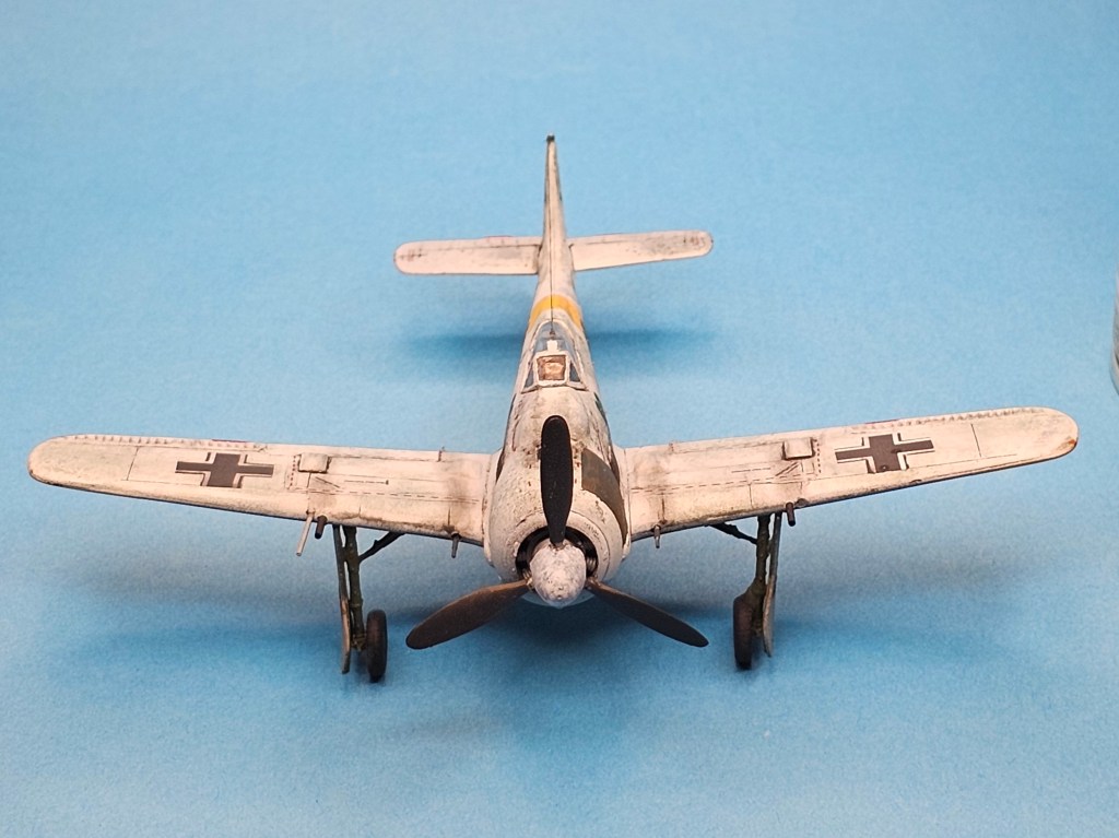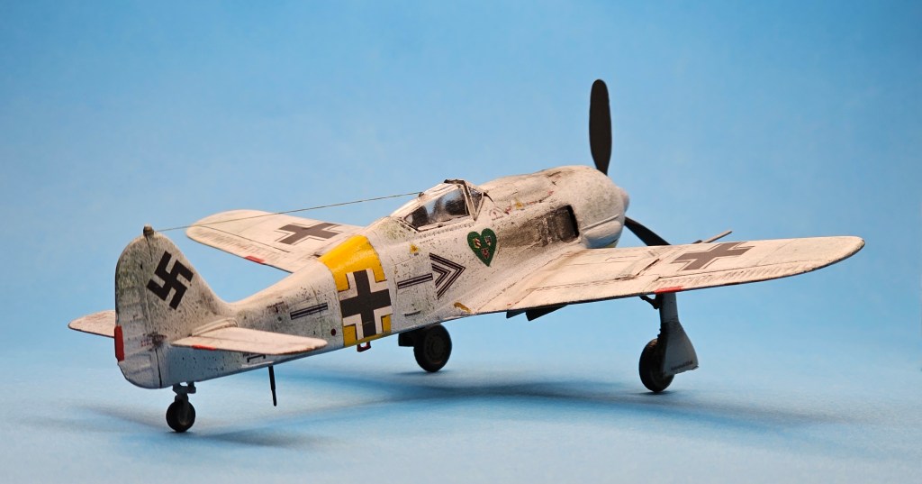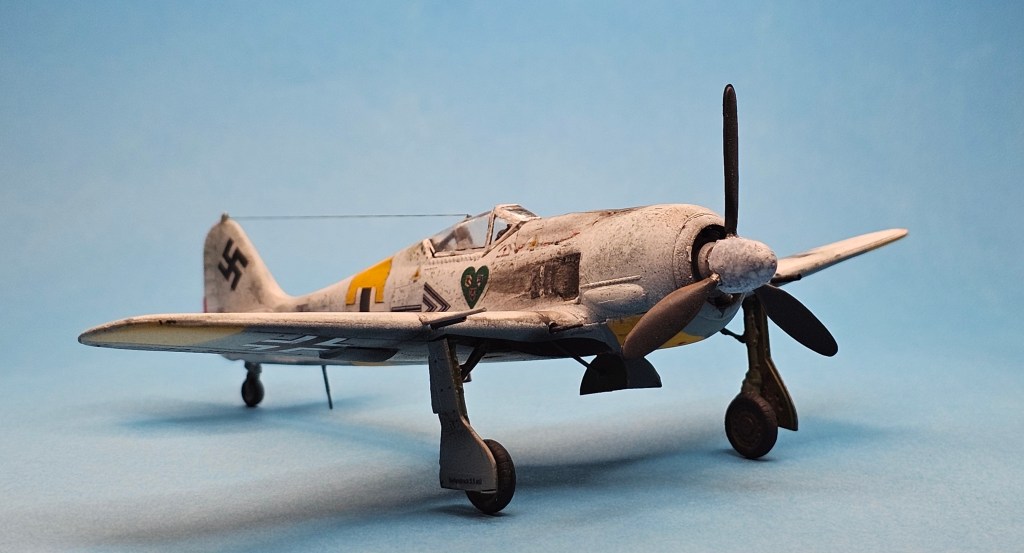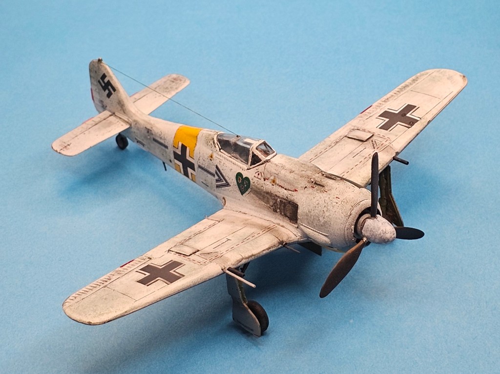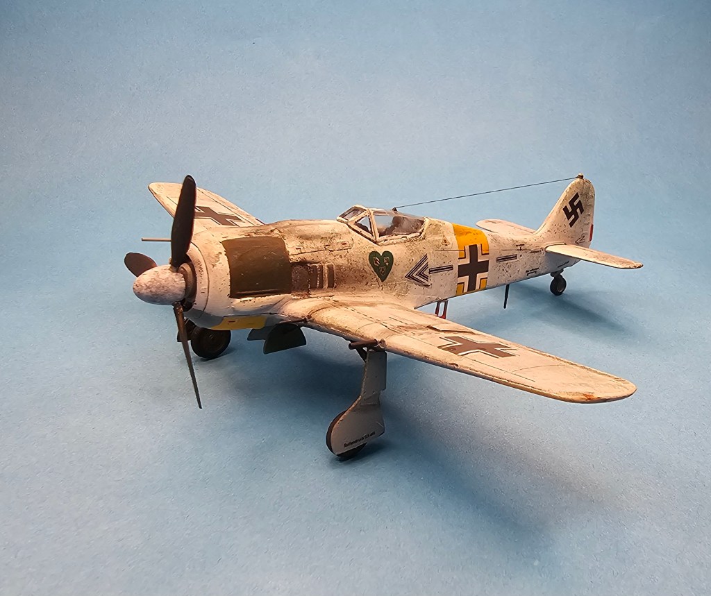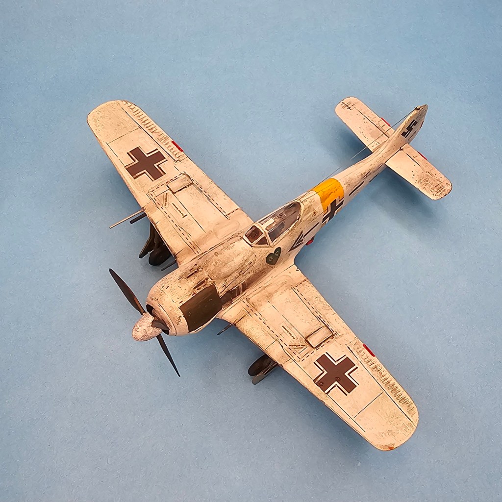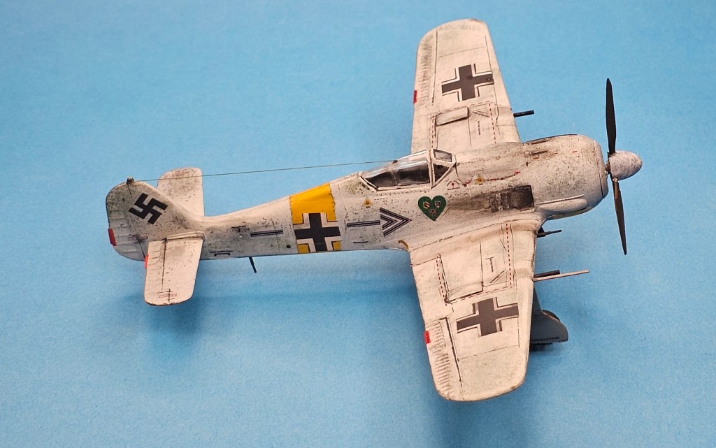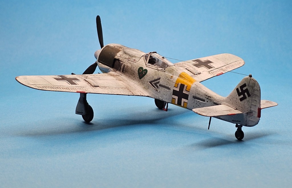 Fw-190, savaş döneminin ikonik uçaklarından biridir. Kurt Tank tarafından 1930’ların sonunda tasarlanan ve takma adı Würger (örümcek kuşu) olan uçak, savaş boyunca yoğun olarak kullanılmıştır. Bf-109’la birlikte Jagdwaffe’nin (avcı gücü) bel kemiğini oluşturmuşlardır. Avcı, avcı-bombardıman, yer saldırı rolleri yanında az da olsa gece avcısı rolleri de üstlenmiştir. Farklı varyantlarda 20.000’den fazla üretilen Fw-190 ilk uçuşunu 1941’de yapmış; Macaristan ve Türk Hava Kuvvetleri’nde de kullanılmıştır. Fw-190, savaşın en iyi tek kişilik avcı uçaklarından biri olarak kabul edilmekteydi. Muharebe performansı, çeşitli operasyonel senaryolara uyum sağlama kabiliyeti ve kullanım ve bakım kolaylığı, onu gerçek bir avcı uçağı haline getirmiş ve ona “Kasap Kuşu” lakabını kazandırmıştır. Modelini yaptığım A-4 varyantı; 1.700 bg güç üreten BMW 801 D-2 motoru ile 622 km/sa hıza ulaşabiliyordu. Kanatlarda 2’şer adet 20 mm MG 151 ve 20 mm MG FF/M top ile burunda 2 adet 7.92 mm MG 17 makineli tüfekle donatılmıştı. Ocak 1945’te aynı tasarımcı Kurt Tank tarafından Fw-190’nın yüksek irtifa önleme uçağı olarak geliştirilmiş uzun gövde ve kanatlı bir üst modeli olan Ta-152 üretime girmiş ancak Mayıs 1945’te savaş bitene kadar sadece 69 adet üretilebilmiş ve savaşın kaderine etki etmek için çok geç kalmıştı.