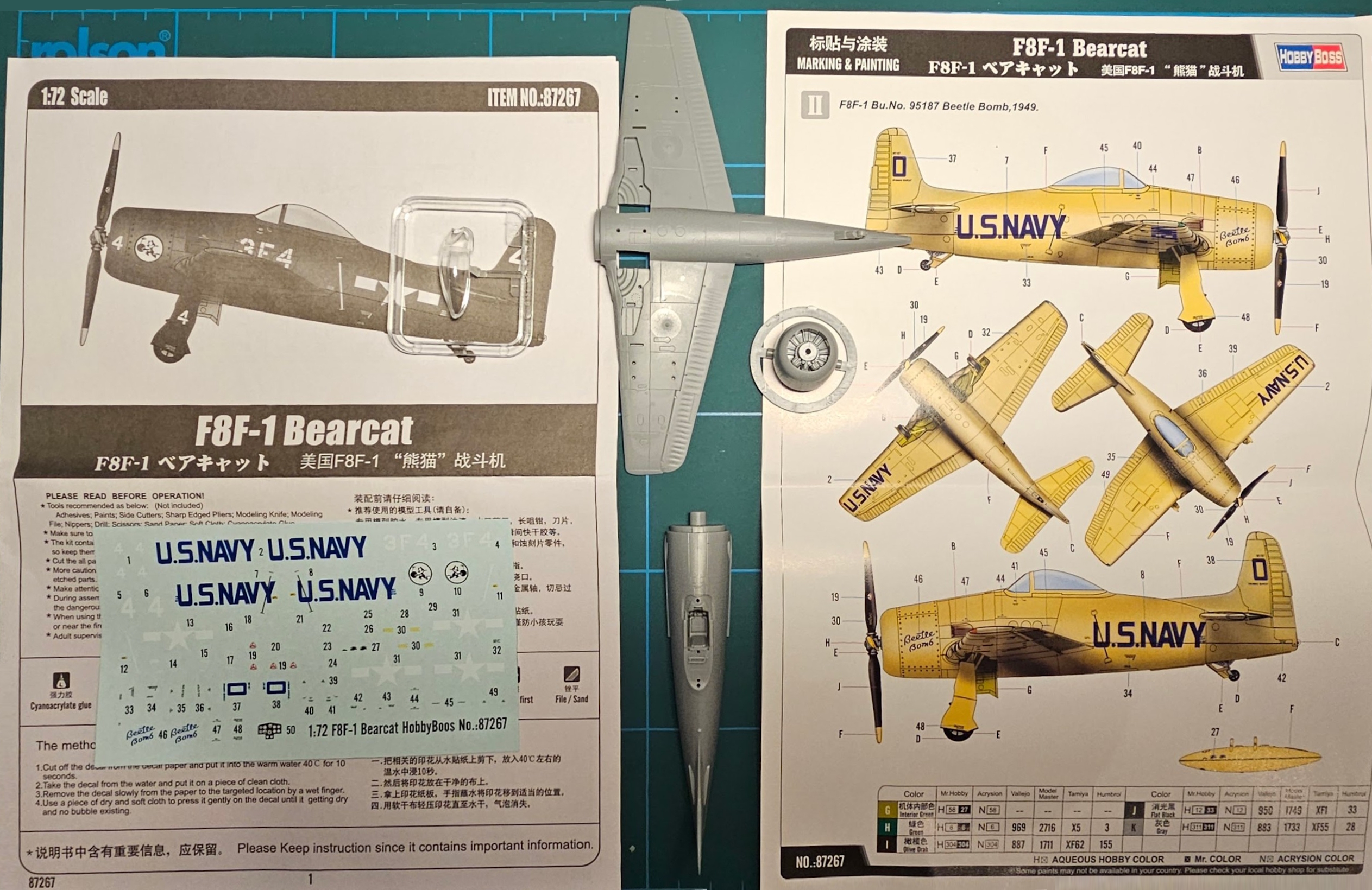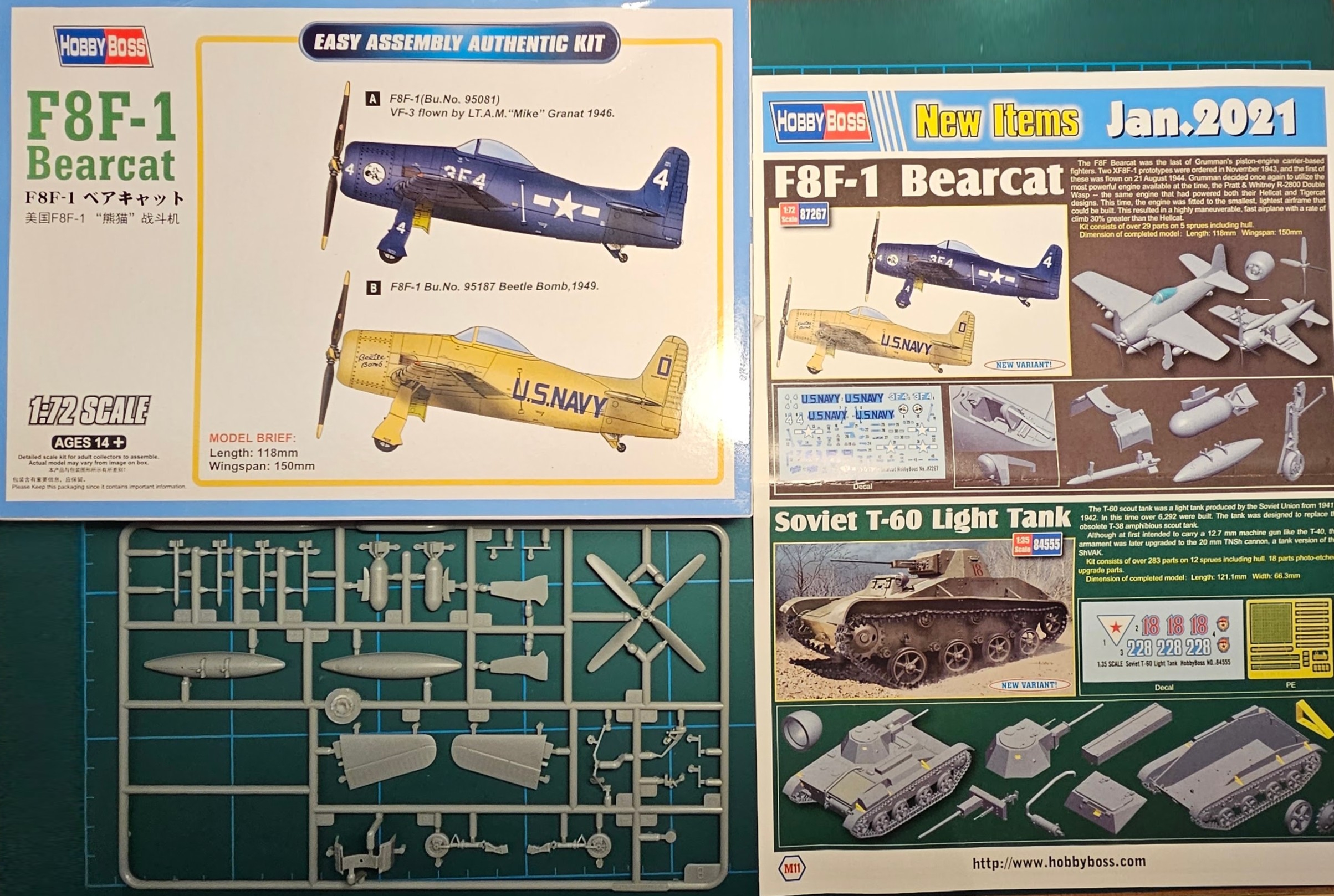 HobbyBoss’un 2020’de yeni kalıpla beraber piyasaya sürdüğü ve firmanın kolay montajlı kitler serisinde yer alan bir ürün. Bu nedenle gövde üstü ile gövde altı ve kanatları içeren 2 büyük parçanın montajı ile modelin büyük kısmı tamamlanabilmekte. İçe detay şeklinde kalıplanmış ve toplamda 26 parçadan oluşan kitin diğer parçaları ise kanopi, motor kaputu, iniş takımları, bombalar, roketler, yakıt tankı ve kuyruk bileşenlerinden oluşmakta. Decal seçenekleri olarak klasik donanma mavisinde bir muharip uçak ile savaş sonrası gösteri uçuşlarında kullanılan sarı renkli “Beetle Bomb” sunulmuş. Monogram/Revell ve Sword firmalarının klasik tipteki kitleri piyasada bulunamadığından kolay montaj olsa da bu kit 1/72 Bearcat için pratikte tek seçenek olarak kalıyor. Karmaşık bir kalıplama teknolojisinin sonucu olarak motor kaput içinde ve kokpit bileşenlerinin tamamı gövde içinde hazır gelmekte ancak kanat altlarında enjeksiyon izleri bulunmakta. Genel olarak temiz, detaylı, montajı kolay ve hızlı bir kit. Mavi renkteki muharip uçak olarak bitirmeyi tercih ettiğim modelin tüm boyama işlemlerini fırça ile tamamladım. Ana renk öncesi panel çizgilerini beyazla boyayıp, ana renk üzerinden panel aralarını hafifçe çizerek beyaz rengi ortaya çıkardım. Parlak ve mat vernikler için Mr. Hobby sprey ürünlerini kullandım. Genel olarak montajı sorunsuz ve keyifli biten bir kit. Tüm seviyedeki modelcilere tavsiye ediyorum.
