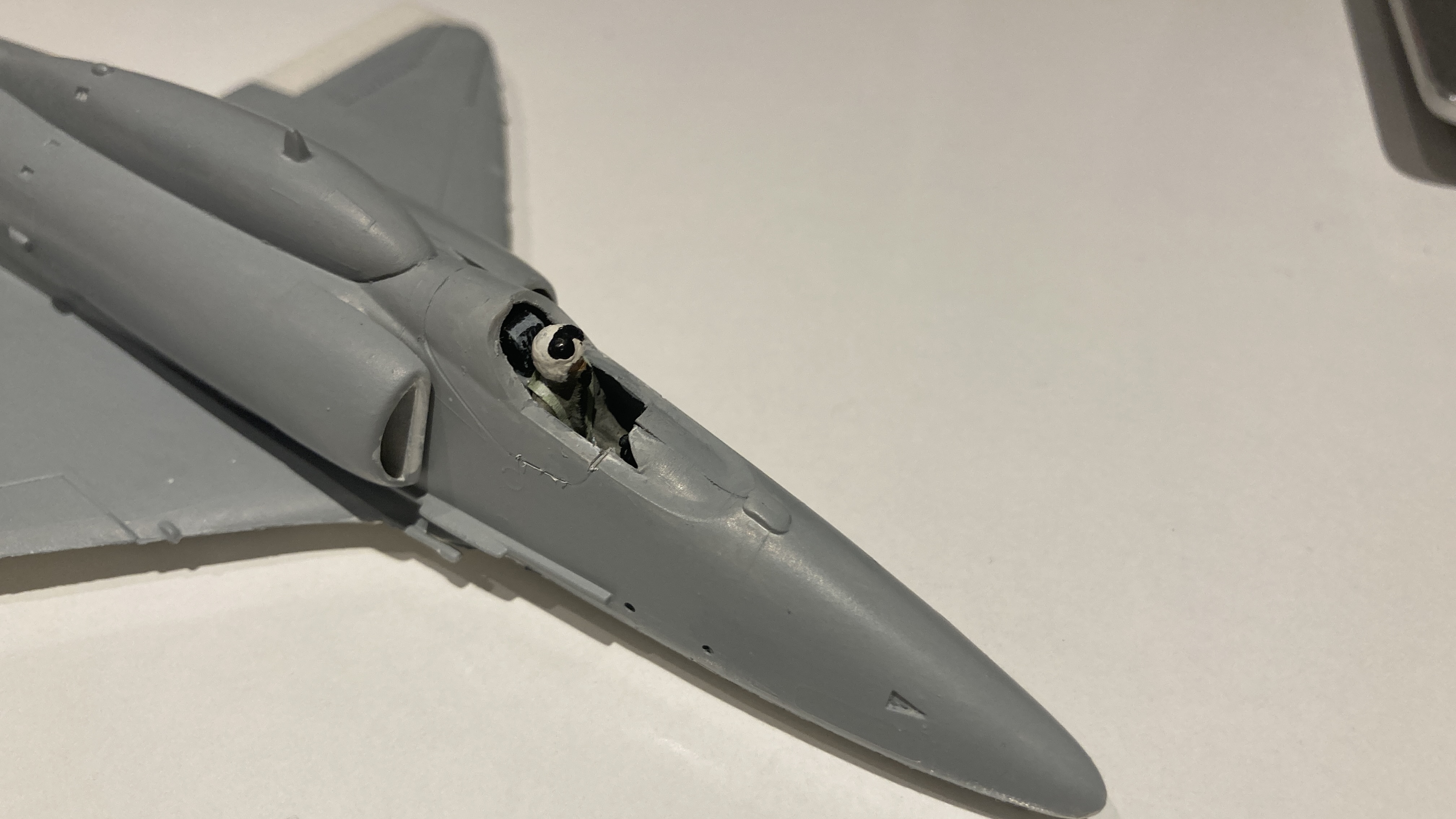 Birkaç ufak sorun dışında birleşim sıkıntısı yok denebilir. Özellikle kanat birleşim yerlerinde biraz putty gerekli oldu. Modeli büyük oranda kutudan çıktığı gibi bitirsem de bazı eklemeler ve düzeltmeler de yaptım. Bunlardan en önemlisi ve zahmetlisi tek parça ve kapalı kanopiyi iki parça ve açık kanopiye çevirmekti. Zordu çünkü kanopinin açılan parçası gövdeye birleşik halde verilmiş olan bir parçayı da içeriyordu. Bu amaçla önce bu parçayı gövdeden keserek çıkardım. Uzun macun ve zımpara işlemlerinden sonra, ikiye böldüğüm kanopinin arka bölümünü bu parçaya ekledim. Elbette kanopiyi açık yapma kararını gövdeyi birleştirdikten sonra vermiş olmam işi daha da zorlaştırdı. Bunun dışında pilotun güvenliği için maske bandından emniyet kemerleri ve telden fırlatma halkası eklendi.
