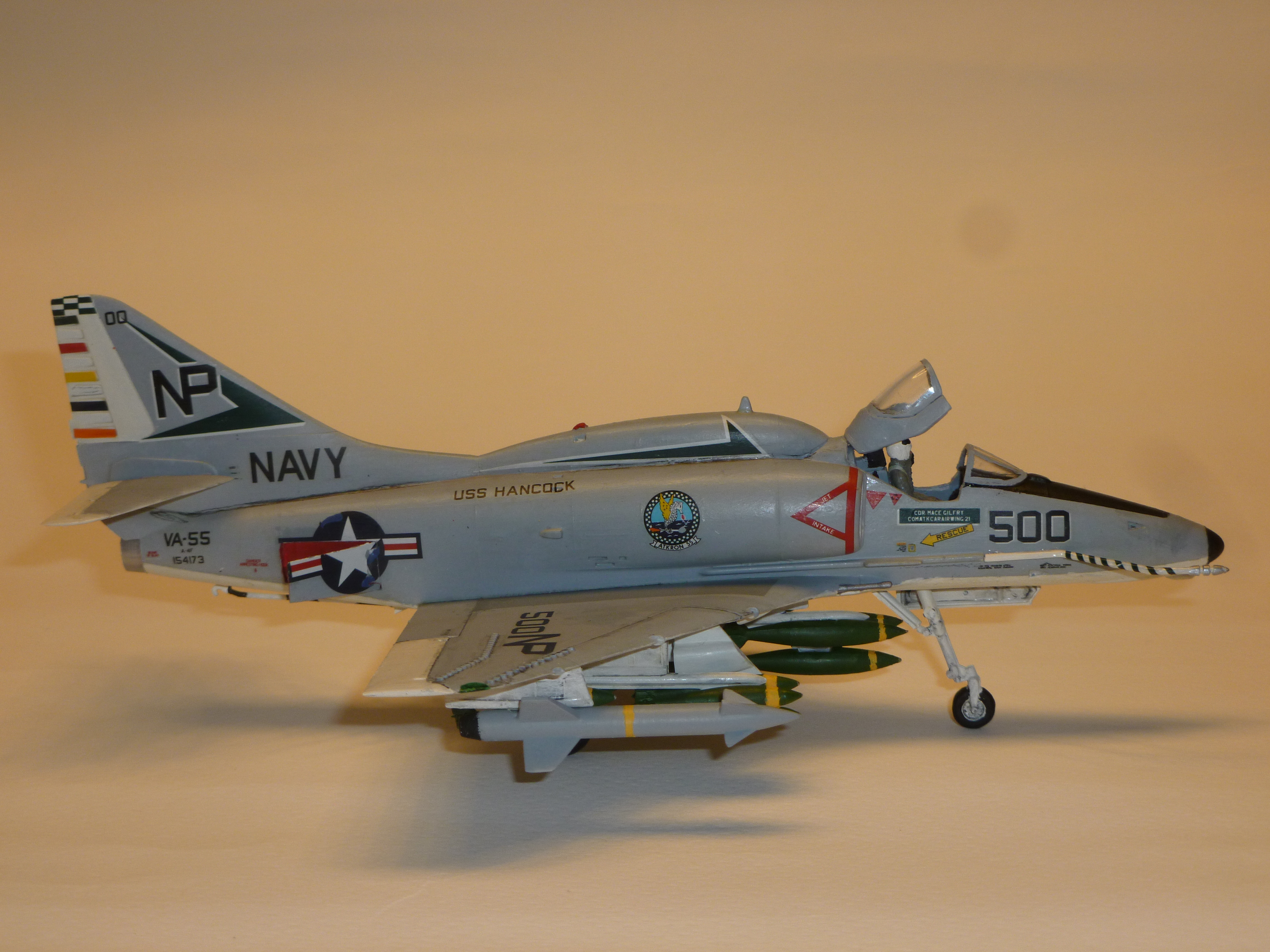Skyhawk’lar farklı alt modellerde üretilmiştir. Modelini yaptığım A-4F modeli, E modeli üzerinde yapılan geliştirmelerle üretilmiştir. Bunlardan en dikkat çekeni gövde sırtında yer alan ve içinde ekstra aviyonikleri barındıran “kambur”dur (daha sonra E ve bazı C’lere de uygulanmıştır). Ayrıca kanat ucu spoylerleri, ön tekerleklere dönüş özelliği ve daha güçlü J52-P-8A motoru (daha sonra J52-P-408’a yükseltilmiştir) eklenmiştir.