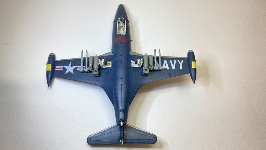 İlk defa bir Hobbyboss (Çin) kiti kullandım, kit kılavuzu basit ancak yeterli. Renkli baskılı boya ve decal şemasına sahip (ABD ve Arjantin). Roketler, bombalar ve iniş takımları/yuvaları için biraz referans araştırması gerekti. Uçağın arka kısmı daha ağır olduğundan, burnu havaya kalkıyor. Bu nedenle uçağın arka alt kısmına takılacak bir parça verilmiş ancak ben bunun yerine uçağın burun kısmını ağırlıkla doldurarak burnun havaya kalkma problemini çözdüm.