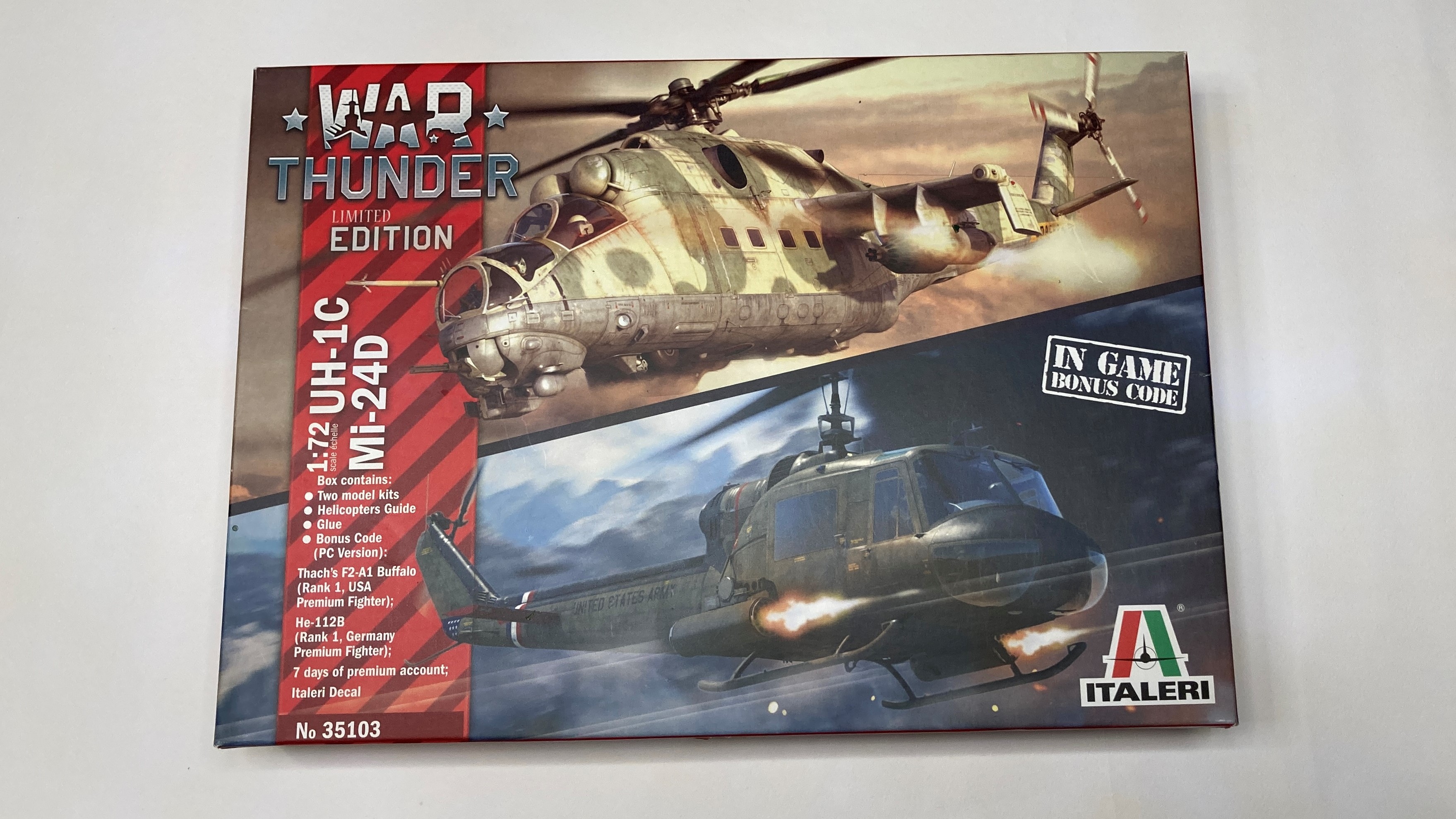 Kit, Italeri’nin popüler savaş simülasyonu oyunu War Thunder etiketi altında çıkardığı limitli bir sürümden çıkan iki modelden biridir. Setten çıkan diğer model ise UH-1C helikopter modelidir. Set içinde ayrıca iki araç için War Thunder sergileme altlığı, özel WT decalleri, referans rehberi ve oyun içi Bonus kodu ve bir adet fırçalı cam ambalajda sıvı Italeri yapıştırıcısı çıkmaktadır.