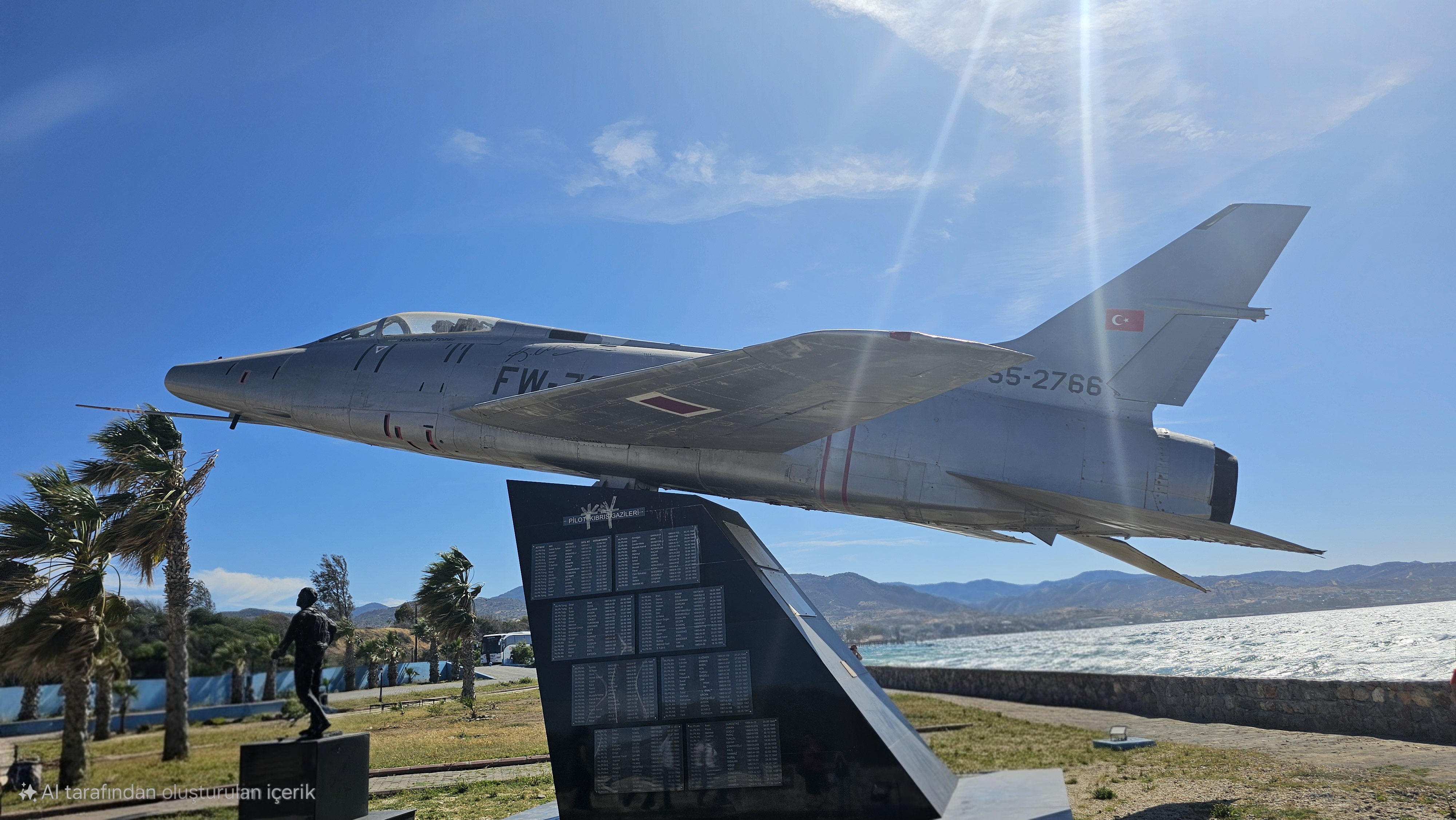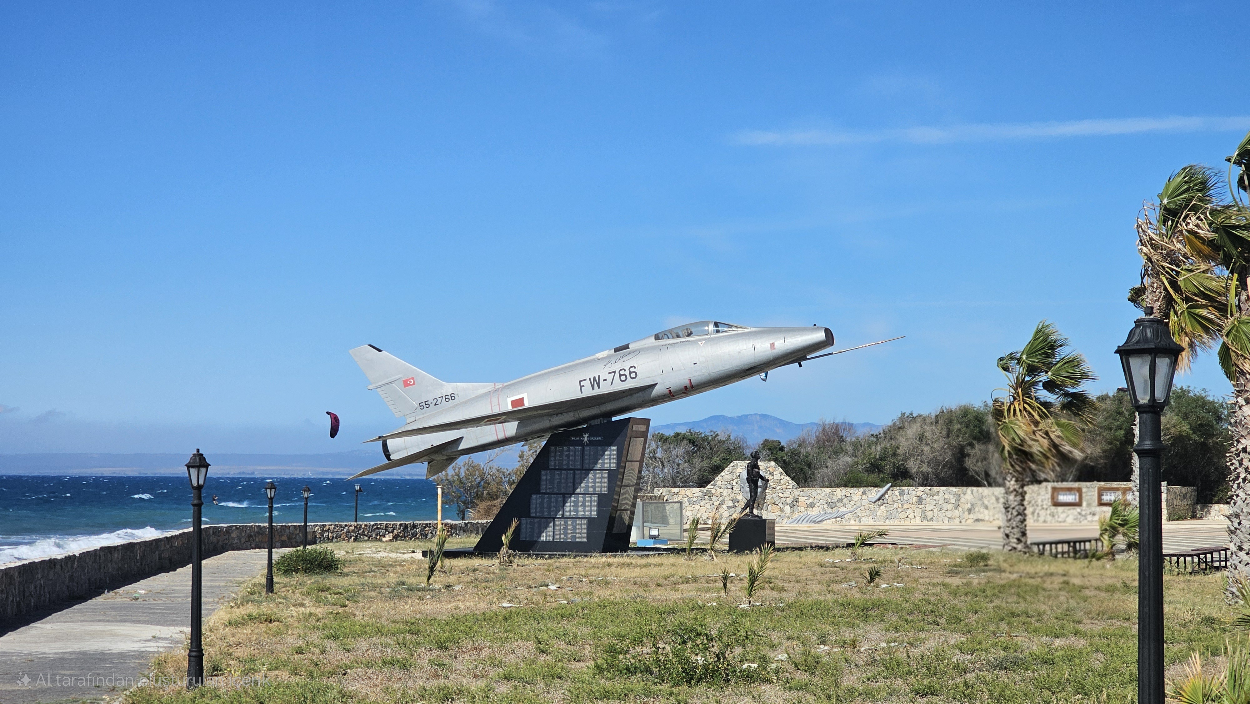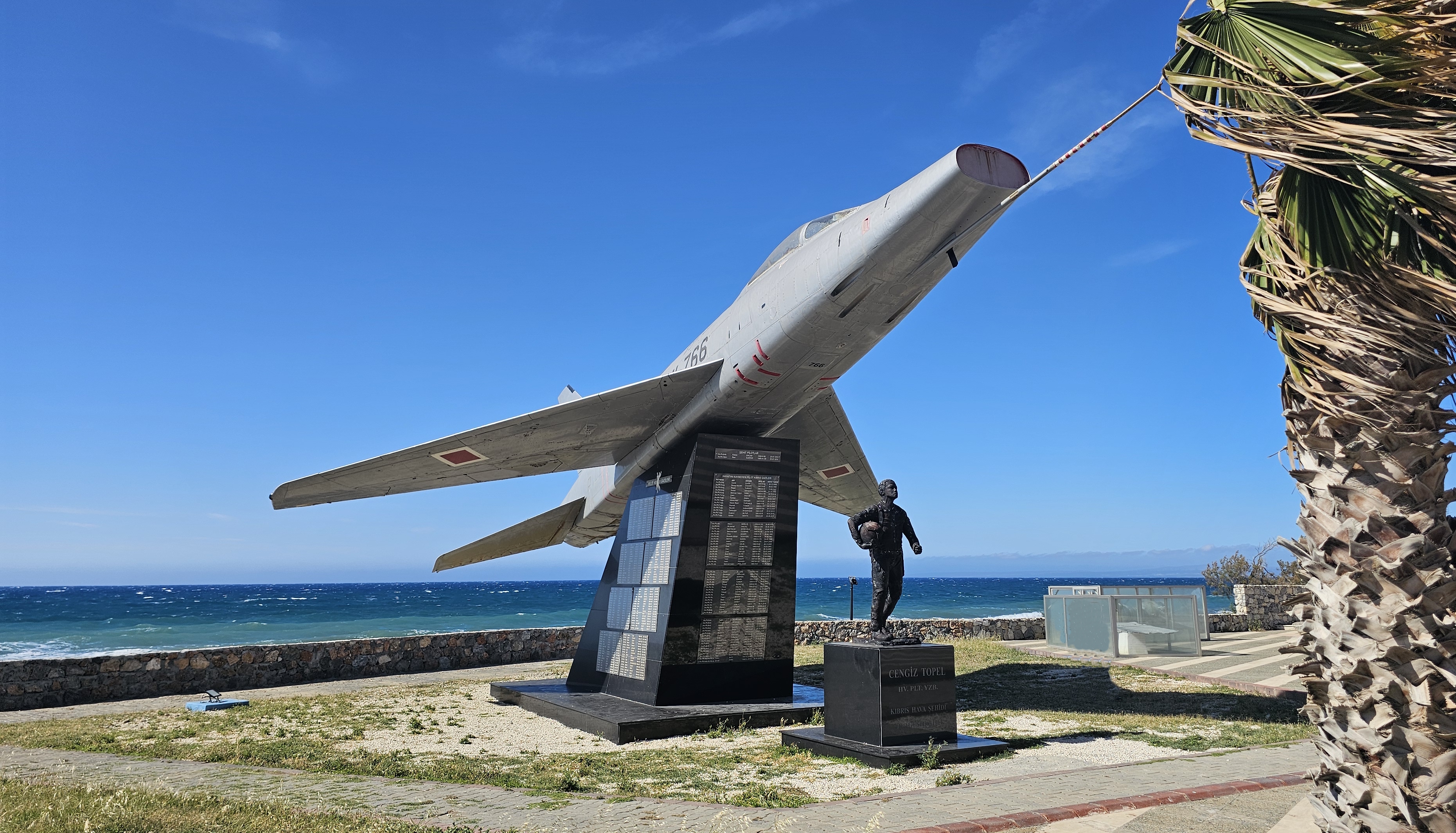 Şehit pilot Yüzbaşı Cengiz Topel anıtı… 1964 yılında Kıbrıs’a yapılan hava operasyonunda Gemikonağı Limanı’nda bulunan Rum gemisine dalış yaptığı sırada yara alan uçağından paraşütle atladıktan sonra esir düşmüş ve işkence görerek öldürülmüştür. Allah rahmet eylesin.