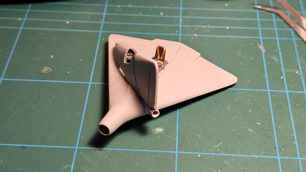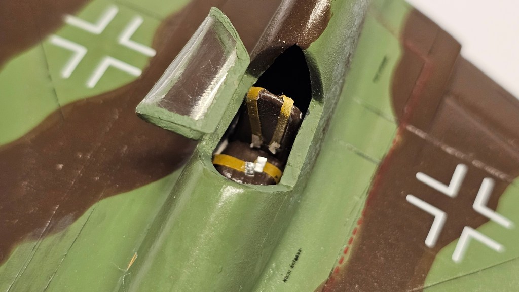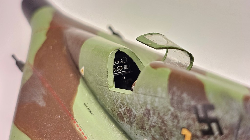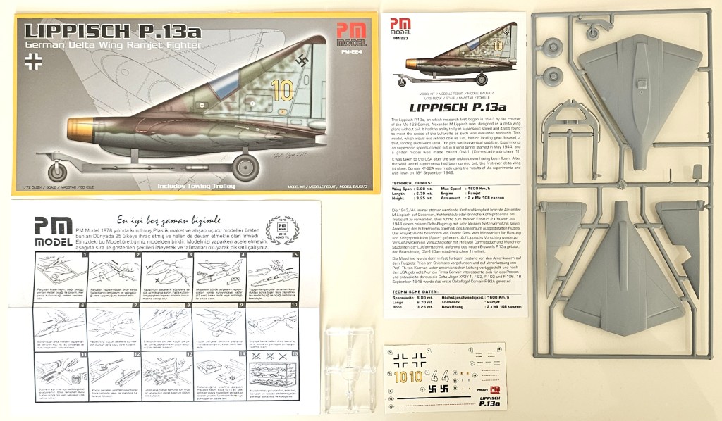 PM firmasının 2004’te çıkardığı kitin 2019’da yeni decallerle tekrar piyasaya sürülmüş bir örneğidir. Az sayıda parçaya sahip, basit bir kit. Decaller muhtemelen hayal ürünü iki farklı uçaktan birini yapma seçeneği sunmakta. Hava alığının arkasını sakız yapıştırıcı ile kapayarak başladım. Üst ve alt gövdeyi birleştirip, hava alığının içini siyaha boyadım. Ayrıca hava alığının içine bir sıkıştırma konisi ekledim. Kokpit basit ve detaysız olduğundan koltuklara emniyet kemerleri ekledim. Kokpit zeminini koyu renk mavimsi gri ile boyadıktan sonra kokpiti de içeren dikey gövde-stabilizatörü birleştirip kokpit duvarlarını aynı renkle tamamladım. Eski decallerden gösterge panelleri yaparak ekledim. Üst ile alt gövde birleşimi problemli, üst bölümün alt yüzeyini zımparalayarak düzeltsem de alt bölüme otururken dengesiz kaldı, bu nedenle oluşan çok fazla boşlukları putty ile doldurdum. Roket çıkışını delerek içini boş hale getirdim, bu alan etrafındaki bölgede de putty gerekli oldu. Zımparalamalardan sonra renk olarak açık mavi ile özel karışım yeşil ve kahverengi renklerini kullandım ve birinci seçenekte verilen şemaya yakın bir boyama yaptım. Parlak vernik ve decallemeden sonra hafif bir kirletme ve mat vernikle ana gövdeyi bitirdim. Bu arada kanat önlerinde makineli top yuvalarını ve gövde altlarındaki kovan tahliye deliklerini açtım. Yuvalara plastikten ve Revell yapıştırıcının iğne ucundan ürettiğim topları ekledim. Taşıma arabasını tamamladıktan sonra uçağı kanopisi açık şekilde yerine yerleştirdim. Daha önce yaptığım Kettenkrad’ın taşıma arabasını çektiği şekilde modeli bitirdim.