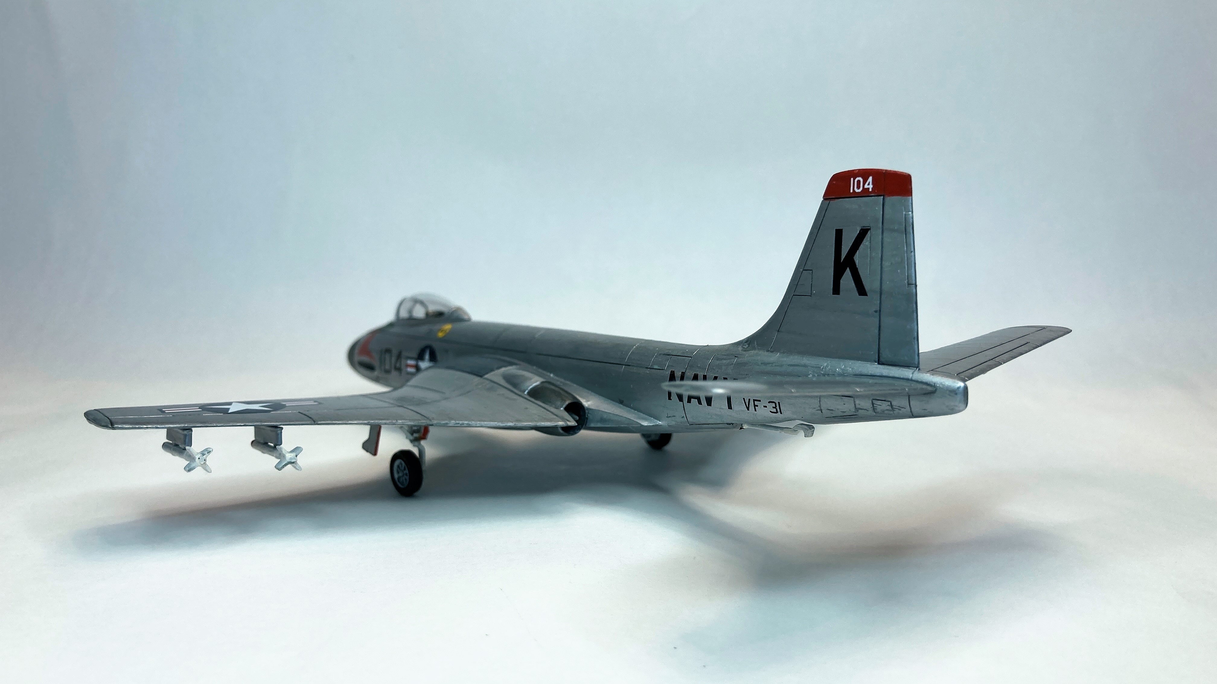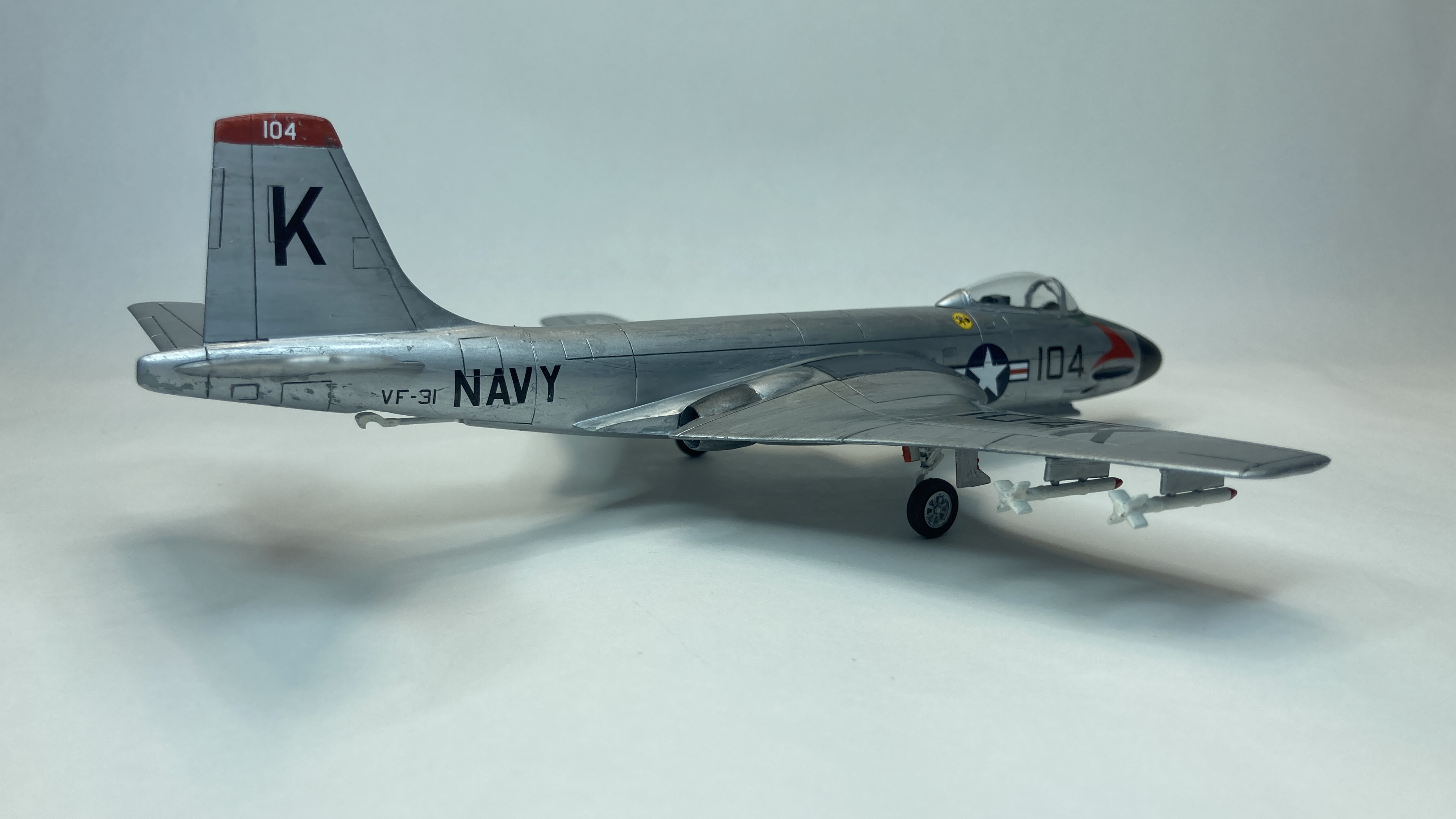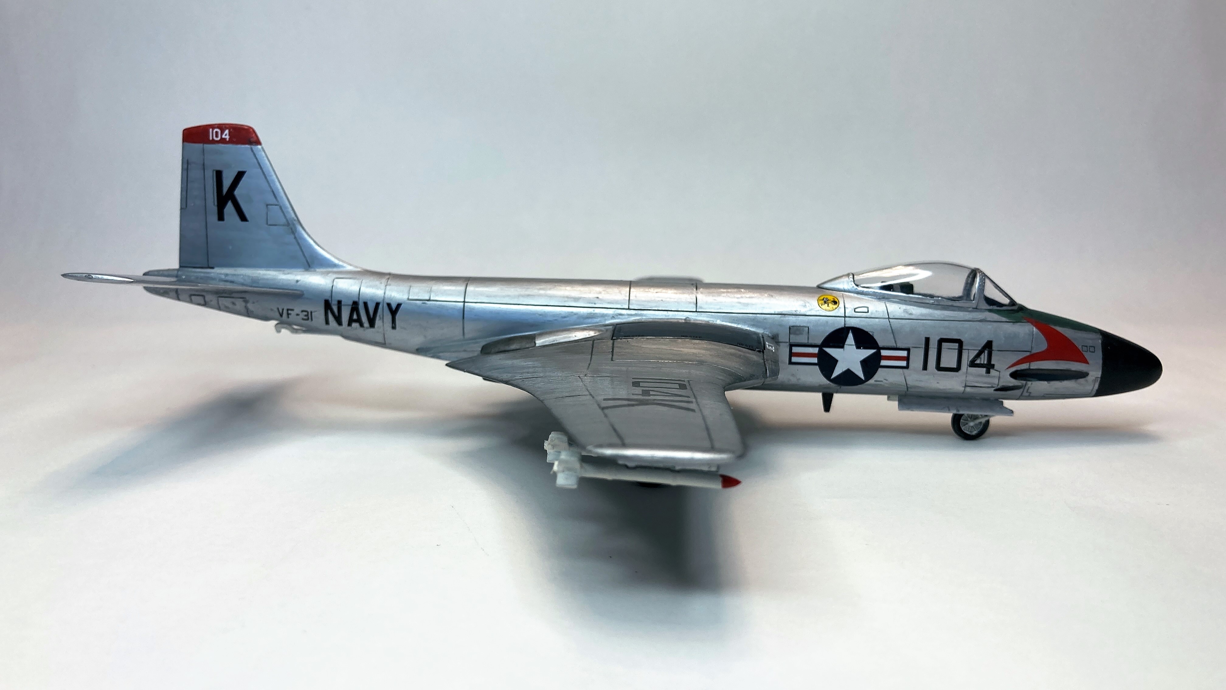 1987 Hobbycraft kalıp, içe detay, keyifli ve nispeten sorunsuz bir kit. Decaller Cartograf kalitesinde ve 7 farklı uçak için seçenek sunmakta. Ben alüminyum renkte VF-31 Tomcatters 104 numarayı yapmayı tercih ettim. Boya ve vernik işlemlerini akrilik boya ve fırça ile yaptığım bu modelin her düzeydeki modelcilere uygun olduğunu düşünüyorum.
