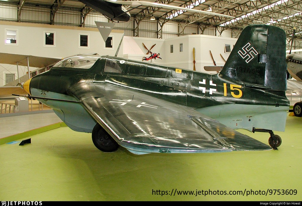 Alexander Lippisch tarafından tasarlanan Me-163, tarihin tek roket itkili savaş uçağıdır. 1941’de ilk motorlu uçuşunu yapan uçak, kısa menziller içinde önleme yapmak için geliştirilmişti. Uçak muhteşem bir performansa sahip olmasına rağmen roket motoru ileri derecede güvenilmezdi ve yakıttan kaynaklı patlamalar gerçekleşebilmekteydi. Uçağın iniş takımları kalkıştan sonra yere bırakılmakta, iniş için kızaklar kullanılmaktaydı. Toplam 370 adet üretilen uçağın modelini yaptığım B-1 modeli, HWK 109-509A-2 çift sıvı yakıtlı roket motor ile 15.000 m irtifaya ve dönemi için müthiş olan 1.040 km/sa hıza ulaşabiliyordu. Uçak 2 × 30 mm (1,181 in) Rheinmetall Borsig MK 108 top ile donatılmıştı.