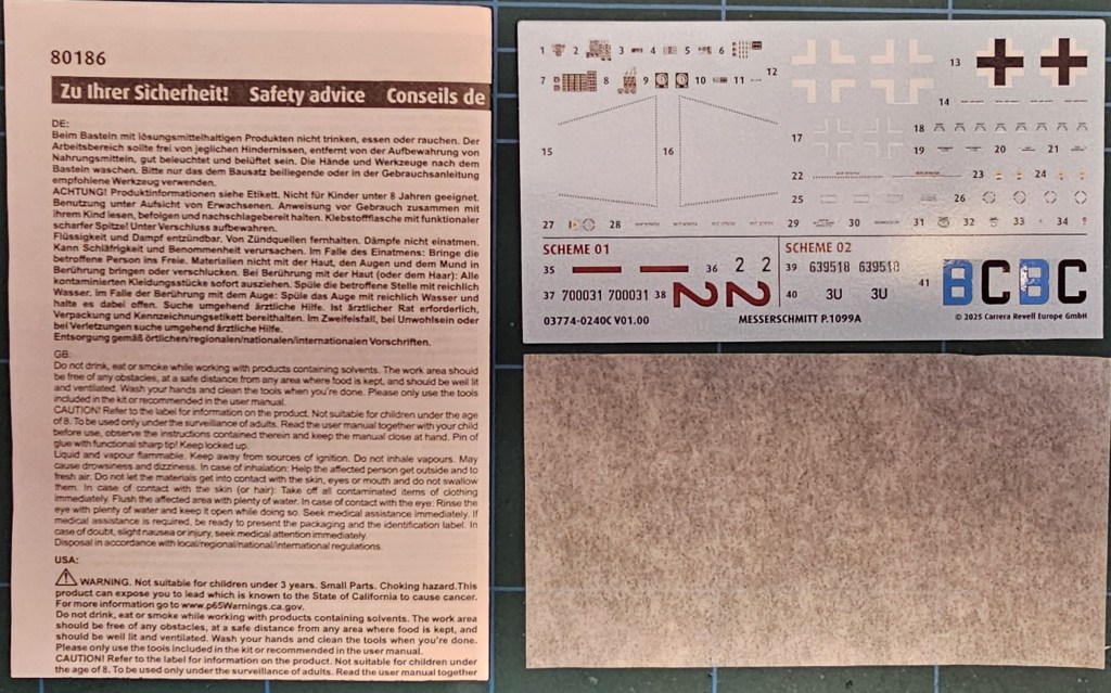 Revell’in 1996’da ürettiği kalıptan 1996, 1998 ve 2010 yıllarında piyasaya sürdüğü A ve B varyantlarından sonra, 2025’te yeni kutuyla tekrar piyasaya sürdüğü bir kit. Hoş bir resim ile gelen kutunun arka tarafında da tamamlanmış bir model gösteriliyor. 60 adet parça iyi kalitede ve hiçbir kusur görünmüyor. Kokpit detaylandırması orta seviyede, kabartma detaylar ve decal seçenekleri mevcut, kanopinin açık sergilenemeyeceği düşünüldüğünde yeterli. Gövde ve kanat detaylandırması ortalama düzeyde. Kokpit kanopisi için şeffaf parça da iyi kalitede, biraz kalın gibi görünüyor, ancak kanopi açık sergilenemeyeceği için bu pek önemli olmayacak. Yeterli sayıdaki decaller baskı olarak yüksek kalitede olsa da biraz kendi üstüne katlanma eğilimi sergilemekte. Açık ve anlaşılır kullanım kılavuzu renkli ve tipik Revell tasarımında. İki kurgusal ve çekici boyama seçeneği sunuluyor.