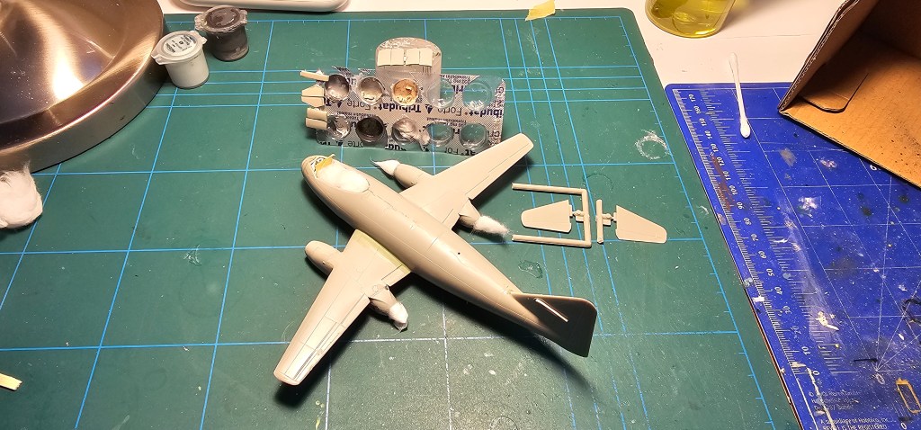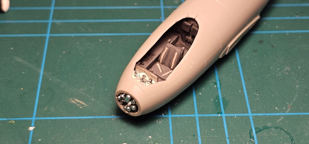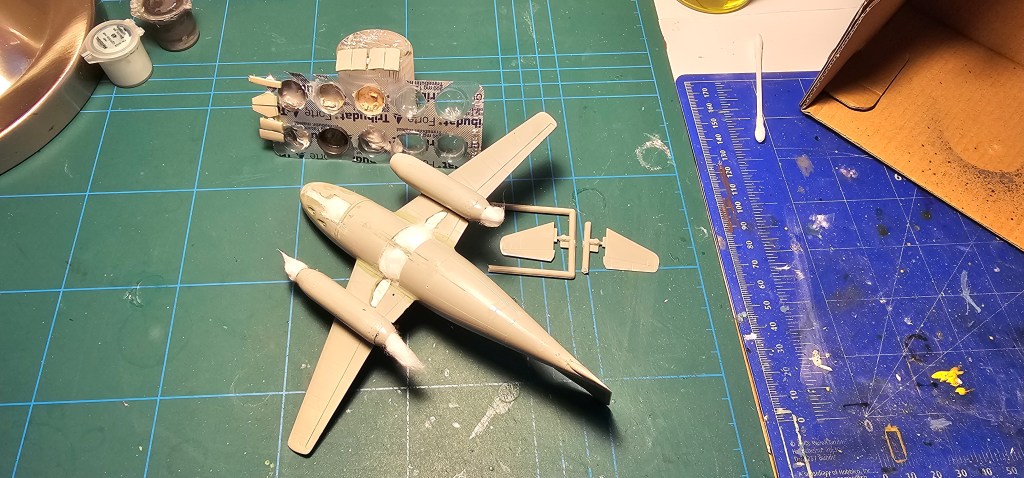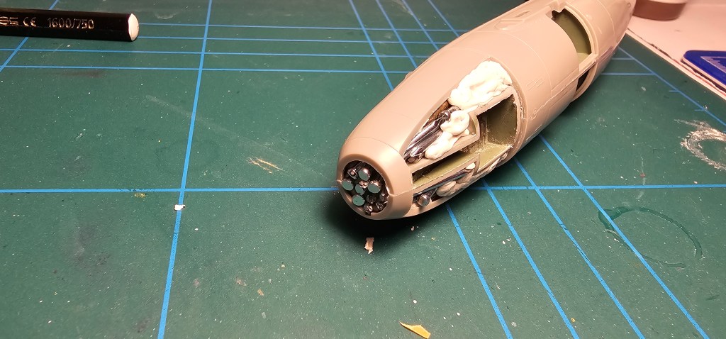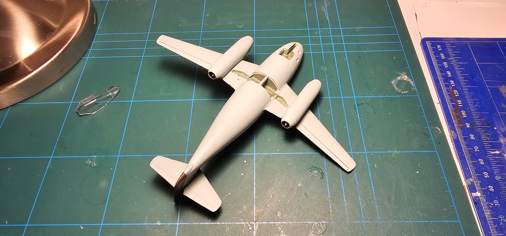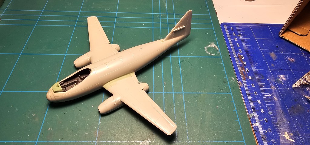Yapım sırasında gösterge panellerinde decal yerine boyamayı tercih ettim, burna konması gereken ağırlıklar için sakız yapıştırıcı, vida ve çivi parçaları kullandım. Kanat birleşim yerlerinde hafif putty gerekli olsa da tasarım planlarına dayalı bu “ya olsaydı-what-if” modelinde, parçalar birbirine genel olarak iyi oturuyor. Renk şeması olarak Me-P.1099A Destroyer Squadron 26, 1945 seçeneğinde karar kıldım. Bazı küçük parçalar ve kanat altları hariç boyamaları fırça ile tamamladıktan sonra, sprey vernikler ve enamel panel kirleticiler ile modeli tamamladım. Bazı decalleri değiştirdim ve yeni decaller ekledim.