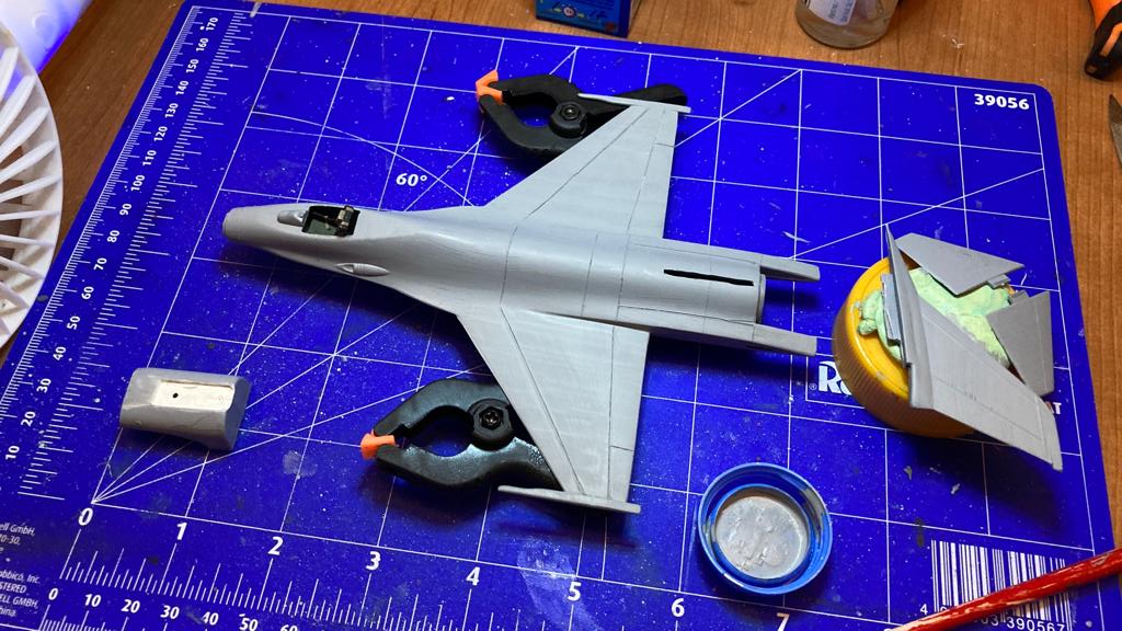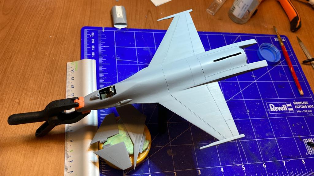 Bol miktarda putty ve zımpara ile yapabildiğim bir kit oldu. Koltuğa kemer yaparak ve HUD ekleyerek kokpite biraz detay eklemeye çalıştım. Gövde ve kanat üstlerindeki az sayıda bulunan dışa detayı içe çevirdim. Bunun dışında tamamen kutudan çıktığı gibi tamamladım. Tüm boya ve vernik işlemlerini fırça ile yaptım.