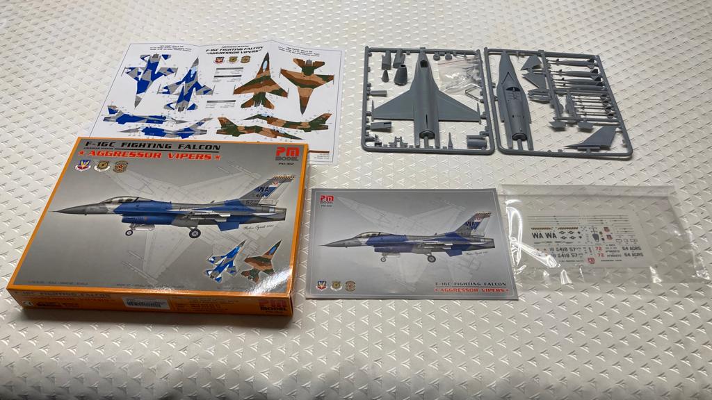 Yaptığım kit PM firmasının 90’lı yıllarda çıkardığı ve zaman zaman yeni decallerle tekrar piyasaya sürdüğü her zamanki F-16 kalıbına dayanan bir ürün. Bu kit ise iki farklı Aggressor decal opsiyonu ile 2022 yılında piyasaya çıktı. Bir miktar dışa detaya sahip, oturma ve çapak problemleri olan, kokpiti detaysız, iniş takımları kısmen detaylı bir kit.