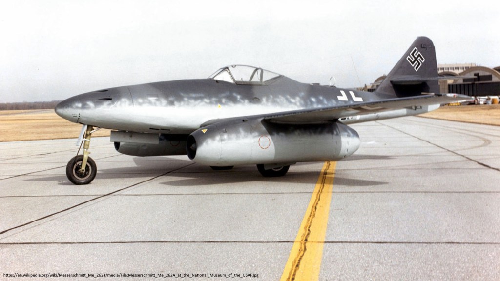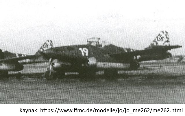 Avcı versiyonları Schwalbe (Almanca: Kırlangıç), avcı/bombardıman versiyonları Sturmvogel (Almanca: Fırtına Kuşu) olarak adlandırılan, Dünya’nın ilk operasyonel jet motorlu savaş uçağıdır.