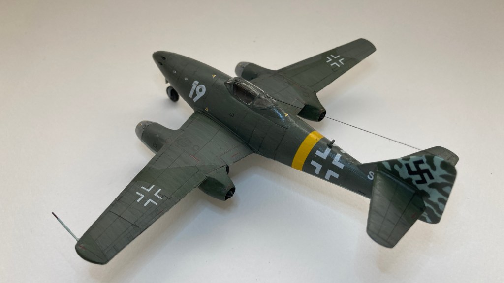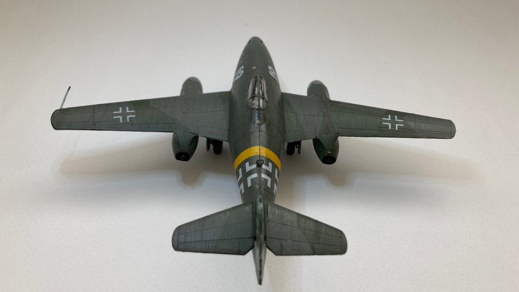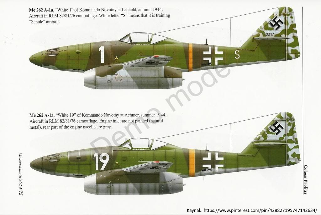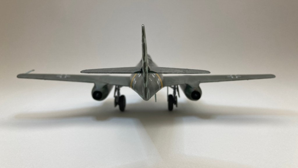 Nisan 1944’te hizmete giren ve toplamda 1.430 adet üretilen uçak 1945 yılında Almanya’da, 1951 yılında Çekoslovakya’da hizmetten çıktı. Birçok farklı versiyonu üretilen uçaktan benim de maketini yapmış olduğum A-1a modeli 2 adet Junkers Jumo 004B-1 eksenel akımlı motordan güç almaktadır. O dönem için akıl almaz bir hız olan 900 km/s maksimum hıza ulaşabilen uçak, 11.450 metre irtifaya çıkabilmekteydi ve 1.050 km menzile sahipti. Uçakta 4 × 30 mm MK 108 top yer almaktaydı. Bunun yanında 24 adet 55 mm R4M roketi, 2 adet BR21 roketi ya da 2 adet 250 kg bomba taşıyabiliyordu.