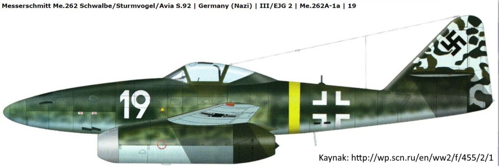 Yapım sırasında Revell firmasının boya ve çıkartma şemalarını verdiği seçeneklerden ikincisini yapmayı tercih ettim. BEYAZ 19 olarak bilinen bu uçak, 1944 yılının Aralık ayında Lechfeld/Almanya’da diğer uçaklarla beraber ele geçirilmiştir. Gövde ve kanat üstleri yeşil ve yeşilimsi gri; gövde ve kanat altları ise açık maviye boyalıdır.