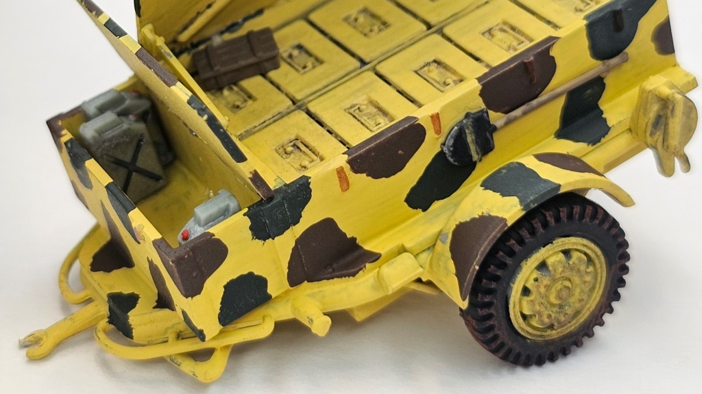 Kamuflaj olarak 1944’te batı cephesinde görev almış bir araç setini seçtim. Bu amaçla Vallejo ve Revell Aqua Color kullanarak fırçayla boyamaları gerçekleştirdim. Parlak ve mat vernik olarak Mr. Hobby spreylerini uyguladım. Kirletme için Tamiya koyu gri panel liner, sulu boya kalemleri ve göz farı kullandım. Bazı ek decallerle modeli tamamladım. Bu modeli ileri düzeydeki modelcilere tavsiye ediyorum.