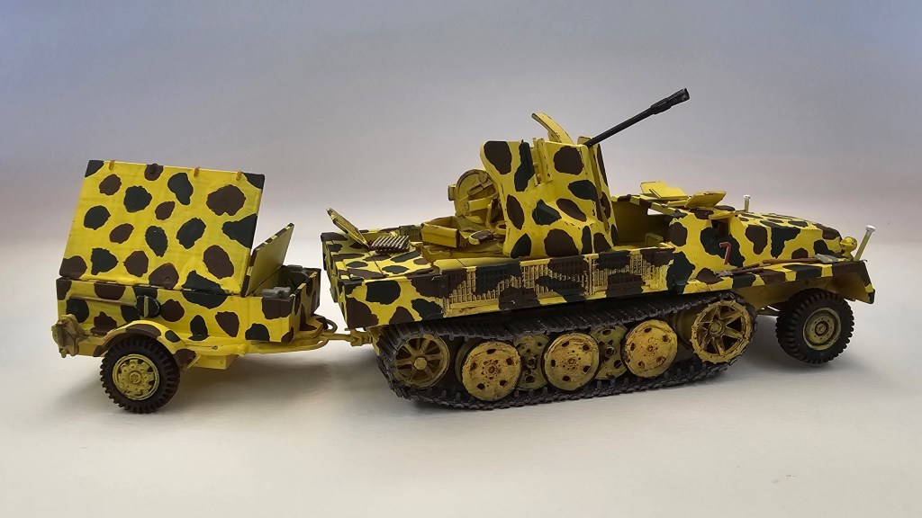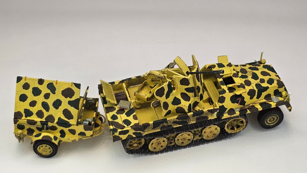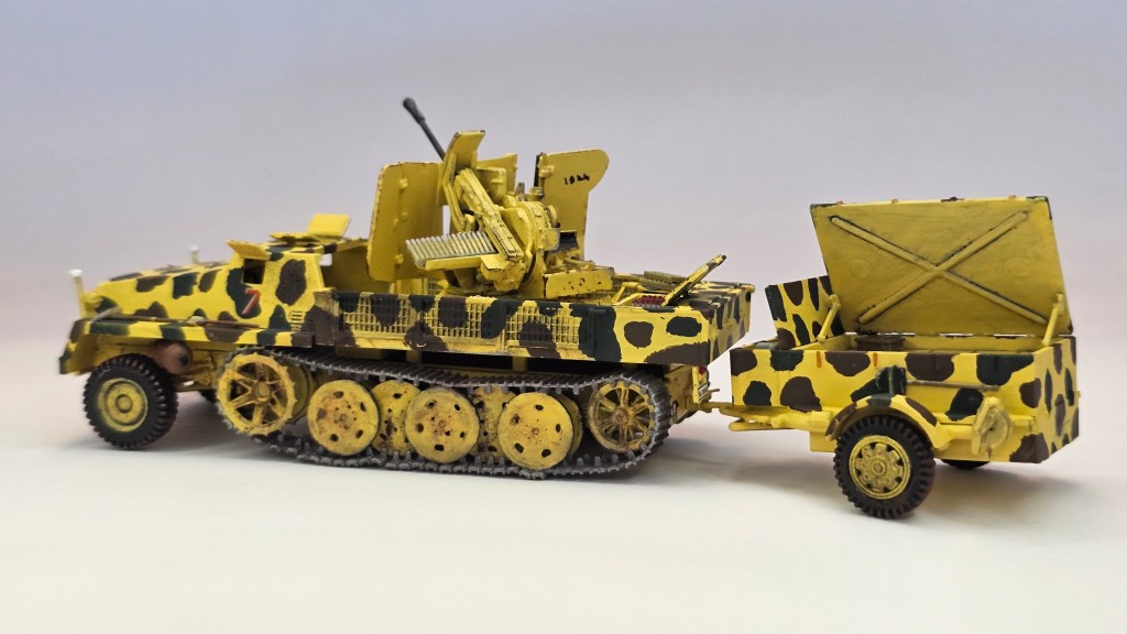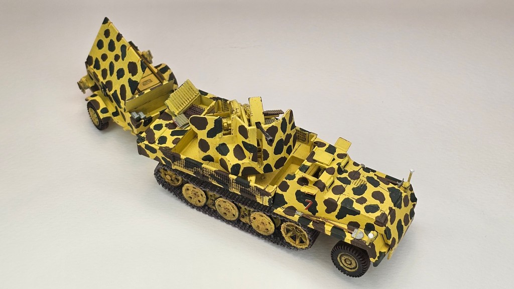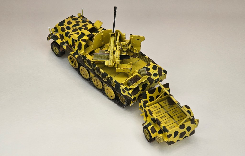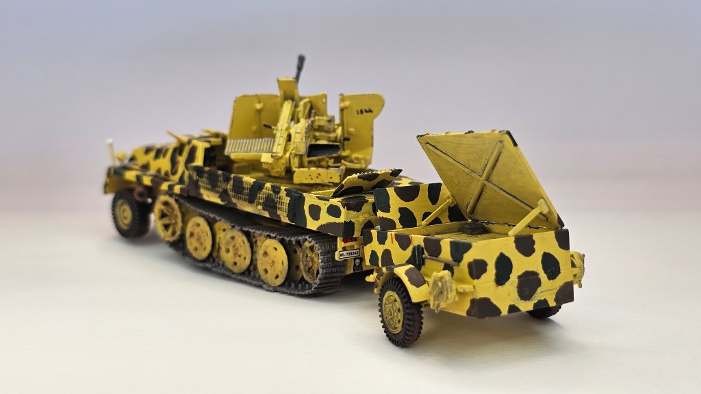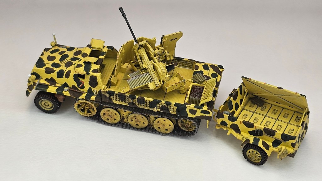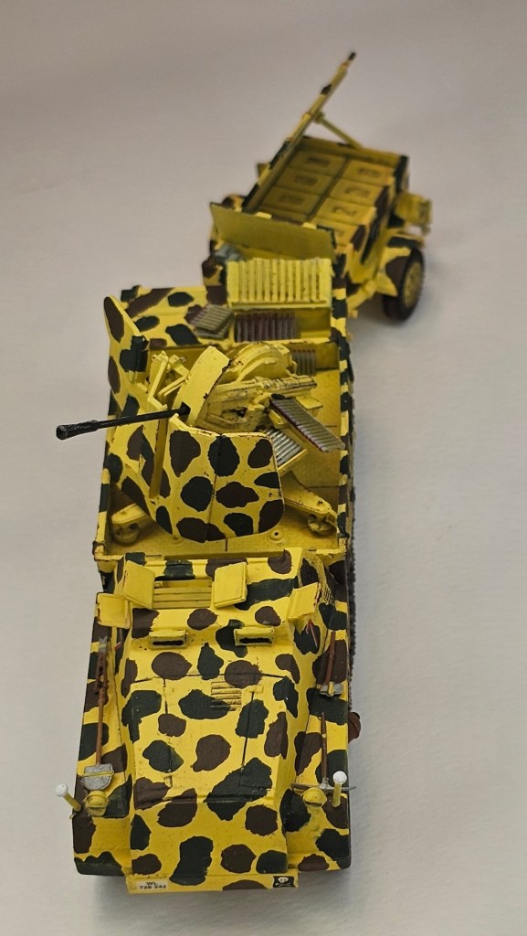 Haziran 2025’te bitirdiğim II. Dünya Savaşı dönemi uçaksavar monteli yarı paletli traktör ve cephane römorku modeli.