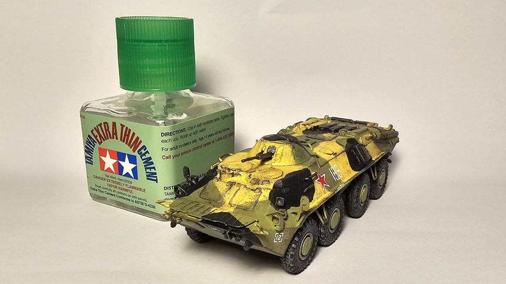 Yapımı çok keyifli ve sorunsuz, parçaların yerleri çok net belirlenmiş ve birleşme problemi yaşanmıyor. Lastikler hariç modelin tamamını monte edip üç renk kamuflaj için modelin tamamını sarı ile boyadım (şarjlı airbrush). Yeşil (şarjlı AB) ve antrasit (fırça) renkleri uyguladıktan sonra rötuşları ve eskitmeleri uyguladım. Parlak vernik (sprey), decalleme, eskitme, mat vernik (sprey), hafif kirletme ile modeli bitirdim. Planda olmasa da gövde yanlarına 2 adet Sovyet yıldızı ekledim.